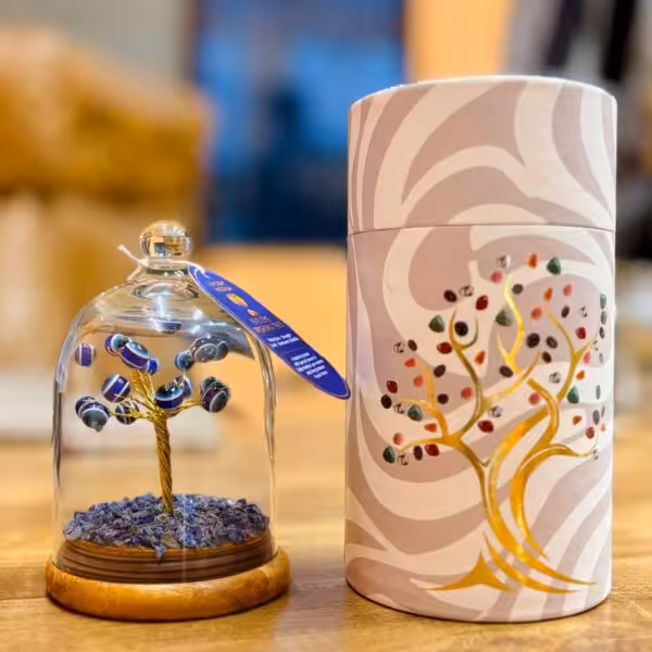 Encased in an elegant glass dome, this decorative tree offers both aesthetic appeal and symbolic protection.