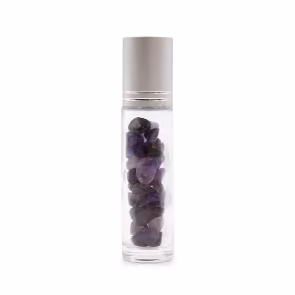 Gemstone Essential Oil Roller Bottle – Amethyst – Silver Cap