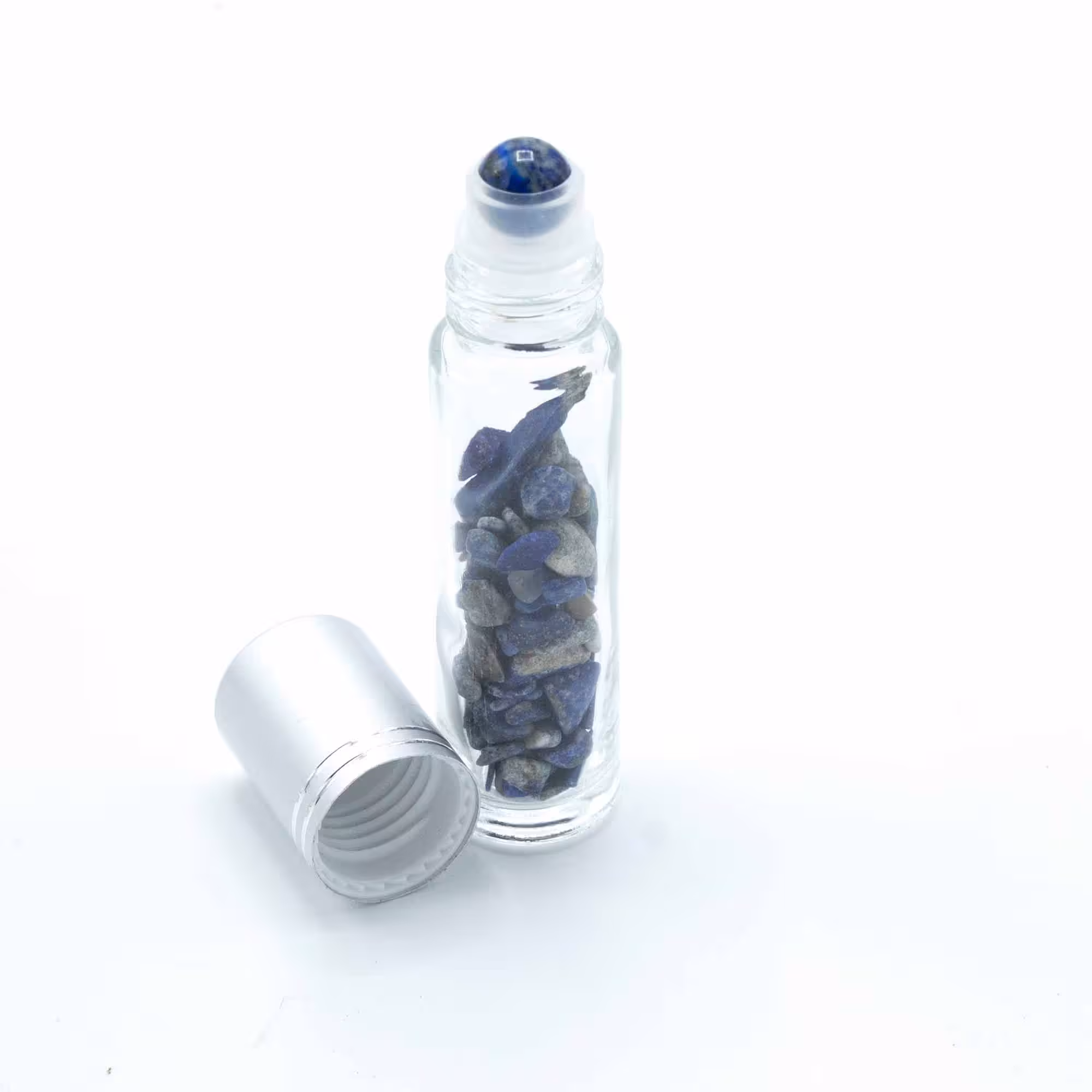 The roll-on bottle allows the oils to be applied precisely and easily to the skin. The ball is made of smoothly polished sodalite.  The stones placed inside provide a unique visual effect, it is also believed that they enhance the effect of the given mixture.