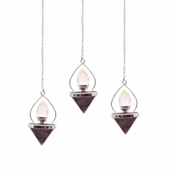 Gemstone Lantern of Life Pendulum – Amethyst & Rock Quartz