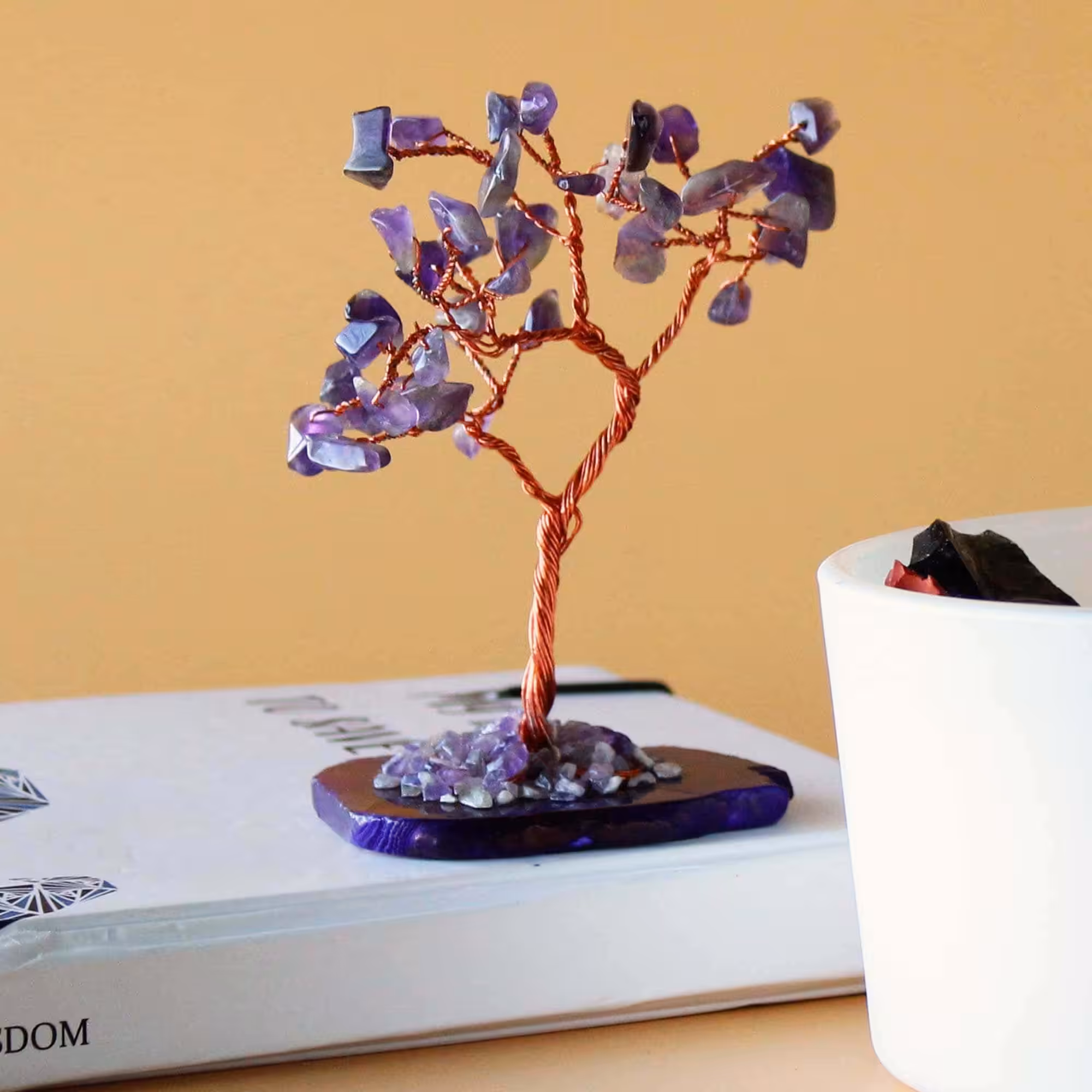 Amethyst Allure: Adorned with 35 glistening amethyst gemstones, each tree emanates the soothing and captivating energy of this cherished purple crystal.