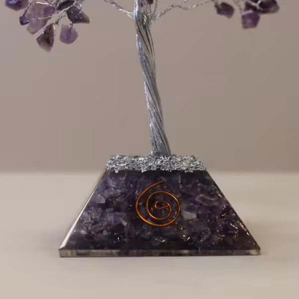 Crafted with 160 high-quality Amethyst stones, this Gemstone Tree stands out with its intricate design and vibrant colours. Each stone is carefully selected to ensure optimal energy flow, promoting peace, balance and clarity. The organite base further amplifies the positive energy, helping to purify your surroundings and create a harmonious atmosphere. This unique piece is not just beautiful; it is also a conversation starter and a thoughtful gift for anyone interested in the metaphysical properties of gemstones.