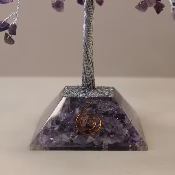 The Gemstone Tree with Organite Base featuring 320 Amethyst stones is a stunning addition to any home or office. This unique piece combines the natural beauty of gemstones with the protective properties of orgonite, making it a perfect choice for those seeking harmony and balance in their environment. The Amethyst stones, known for their calming energies, create an enchanting display that not only uplifts your decor but also promotes a sense of peace and tranquillity.
