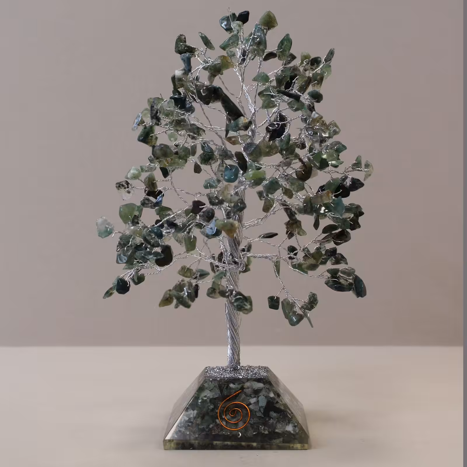 Gemstone Tree with Organite Base – 320 Stone – Moss Agate