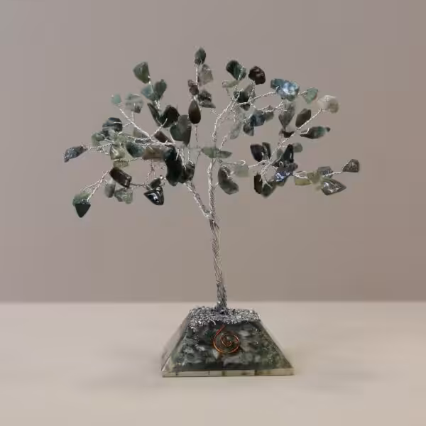 Discover the enchanting Gemstone Tree with Orgonite Base, featuring 80 stunning Moss Agate stones. Perfect for enhancing energy and promoting wellbeing in any space.