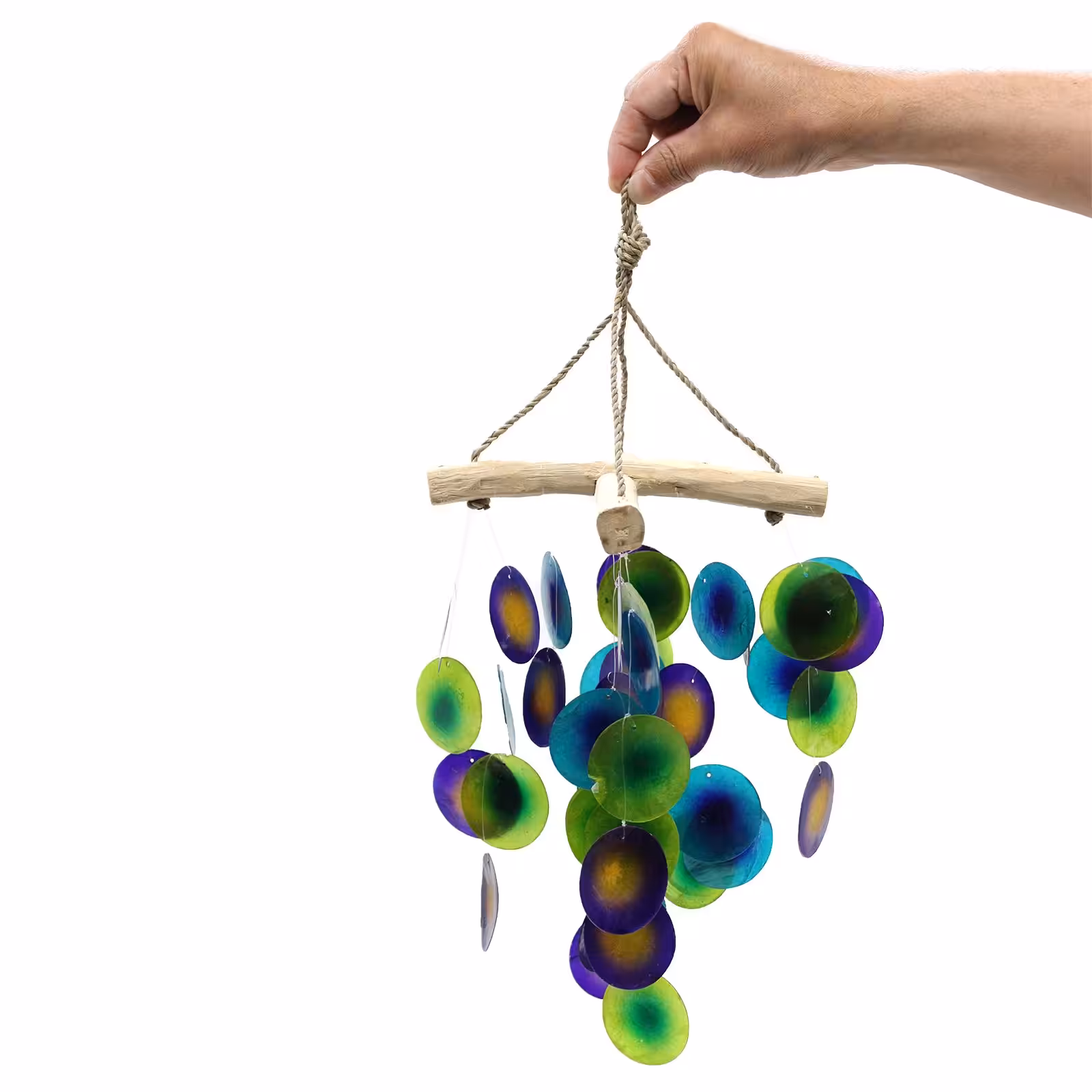 Bring nature inside with these absolutely beautiful Driftwood Chimes. Hand made by small family businesses in Bali, using beach source materials such as driftwood and Capiz glass. Capiz is a well-known shell that creates an enjoyable sound when blowing in the wind and bashing against another.