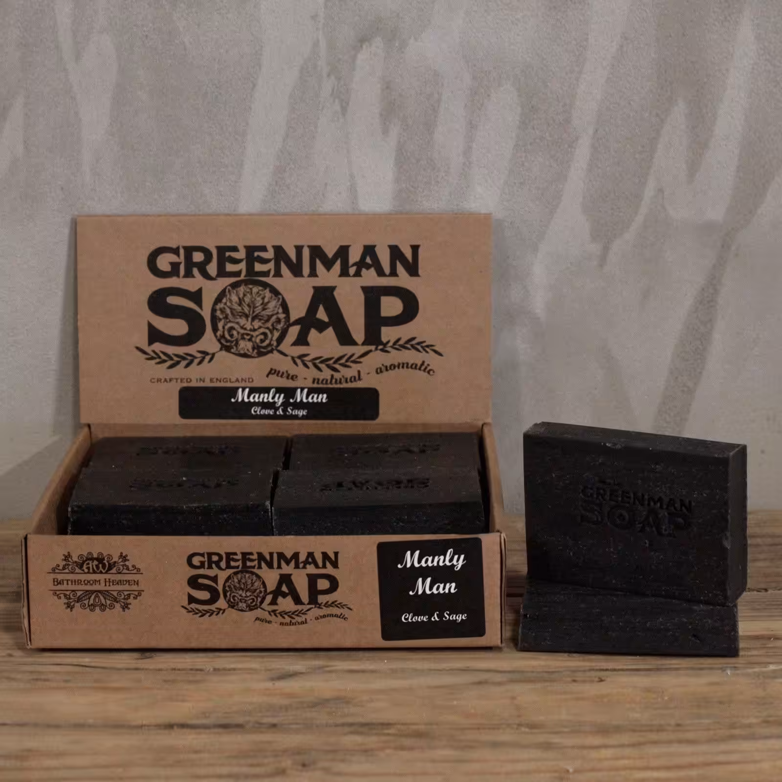 Made with clove and sage essential oils, with activated charcoal, this soap has a spicy, aromatic scent found in typically masculine fragrances.