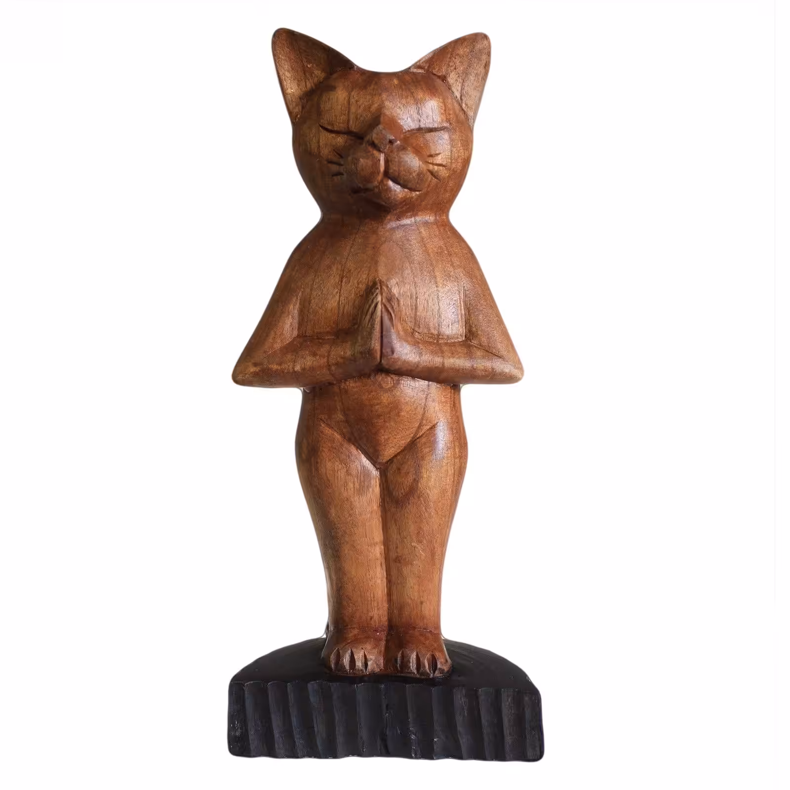 Very unique and original  Wooden Yoga Cats will make an amazing addition to any home  and great for yoga lovers. Inhaling and exhaling deeply, these wooden cats practice Hindu yoga in a sculpture by Indonesian artisans for Ancient Wisdom.These yoga masterpieces are carved from the Suar wood by hand. Although carved in similar posture every…