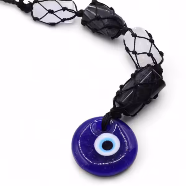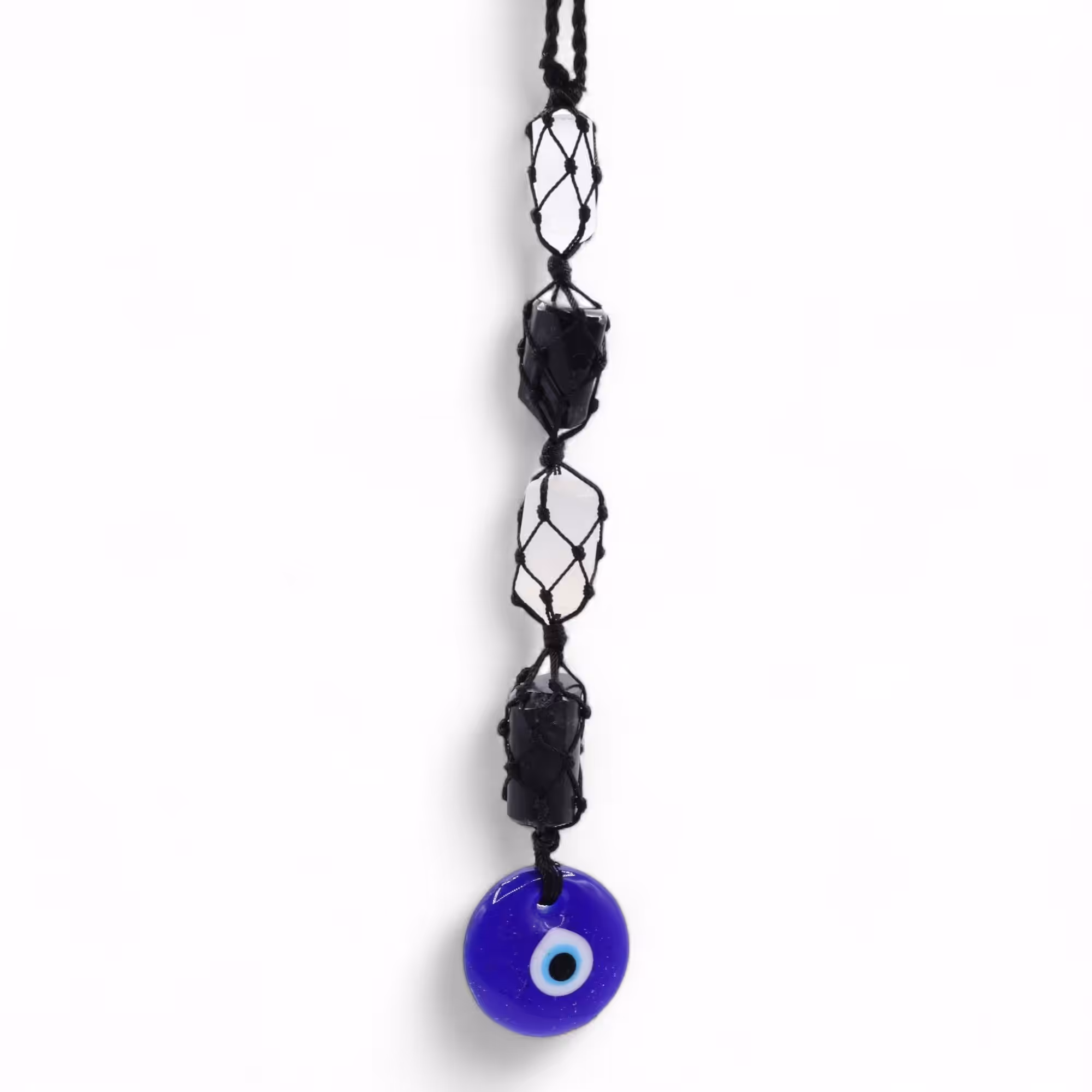 A striking spiritual charm that balances protection and purification. This hanging pendant combines raw Black Tourmaline and Selenite tumbles – two powerful stones known for grounding negative energy and promoting inner peace.