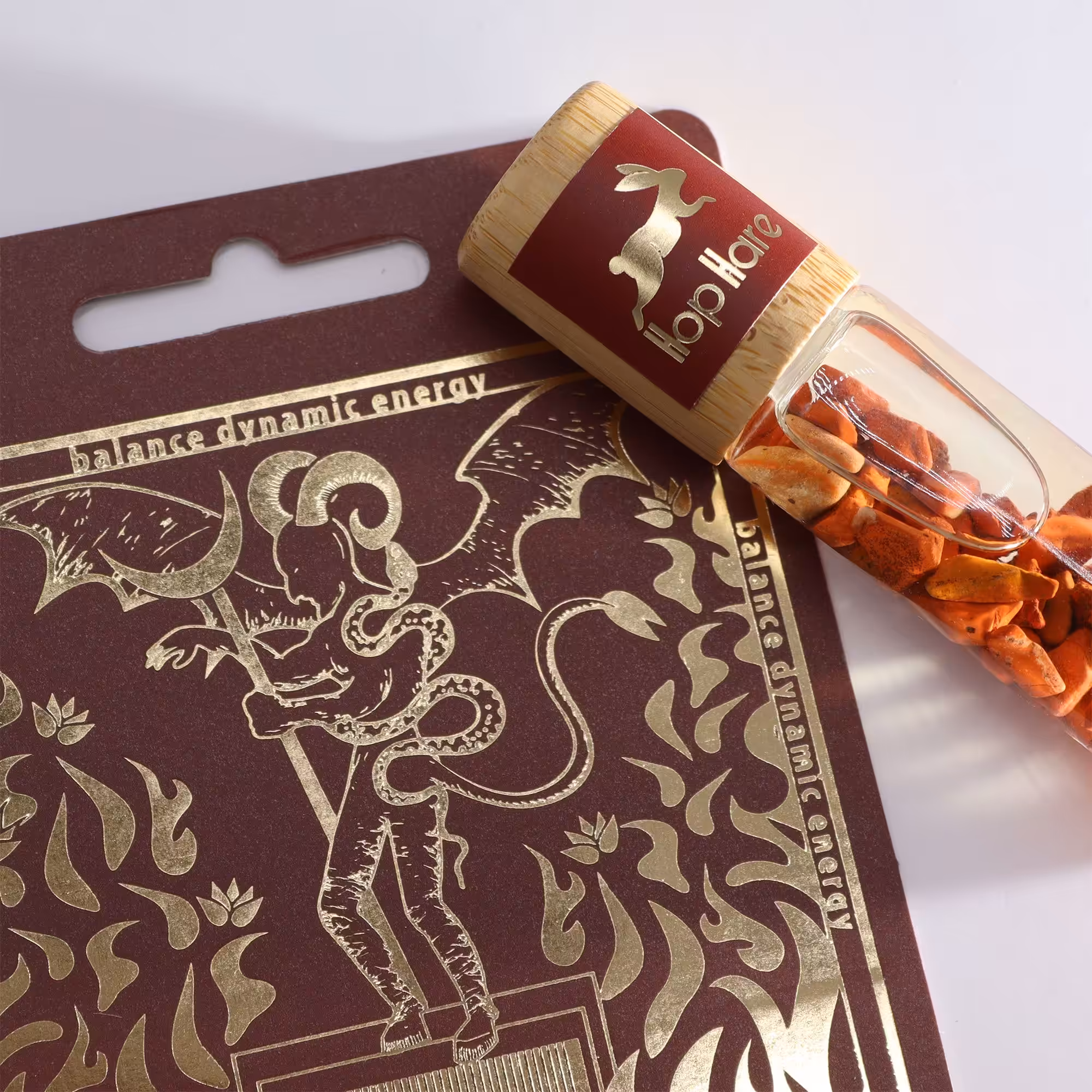 Discover the Bold Essence: "The Devil" by Hop Hare, a gemstone-infused essential oil roll-on designed to balance your dynamic energy with the grounding force of Red Jasper. Each roll-on is a potent concoction of bold scents, bound to awaken your most vibrant self.