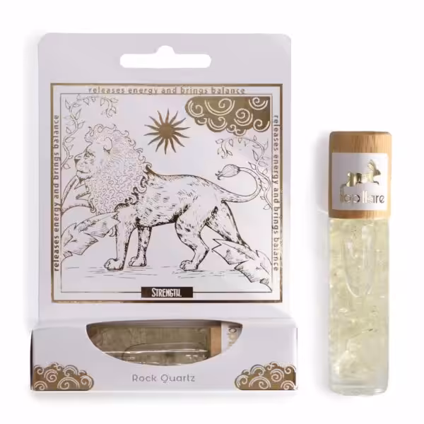 Each roll-on is empowered by a Rock Quartz gemstone, renowned for its ability to cleanse the aura and enhance the energetic flow. The crystal's purity and strength are akin to that of a lion's heart – resilient and balanced.