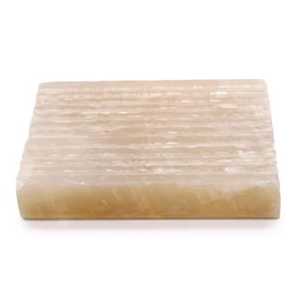 A modern and stylish soap dish made of one piece of honey Onyx will emphasize the beauty of any bathroom in a beautiful and unique way. It combines a unique appearance with practical use. Grooves on the top prevent the soap from slipping. The photo shows the product in an exemplary colour scheme.
