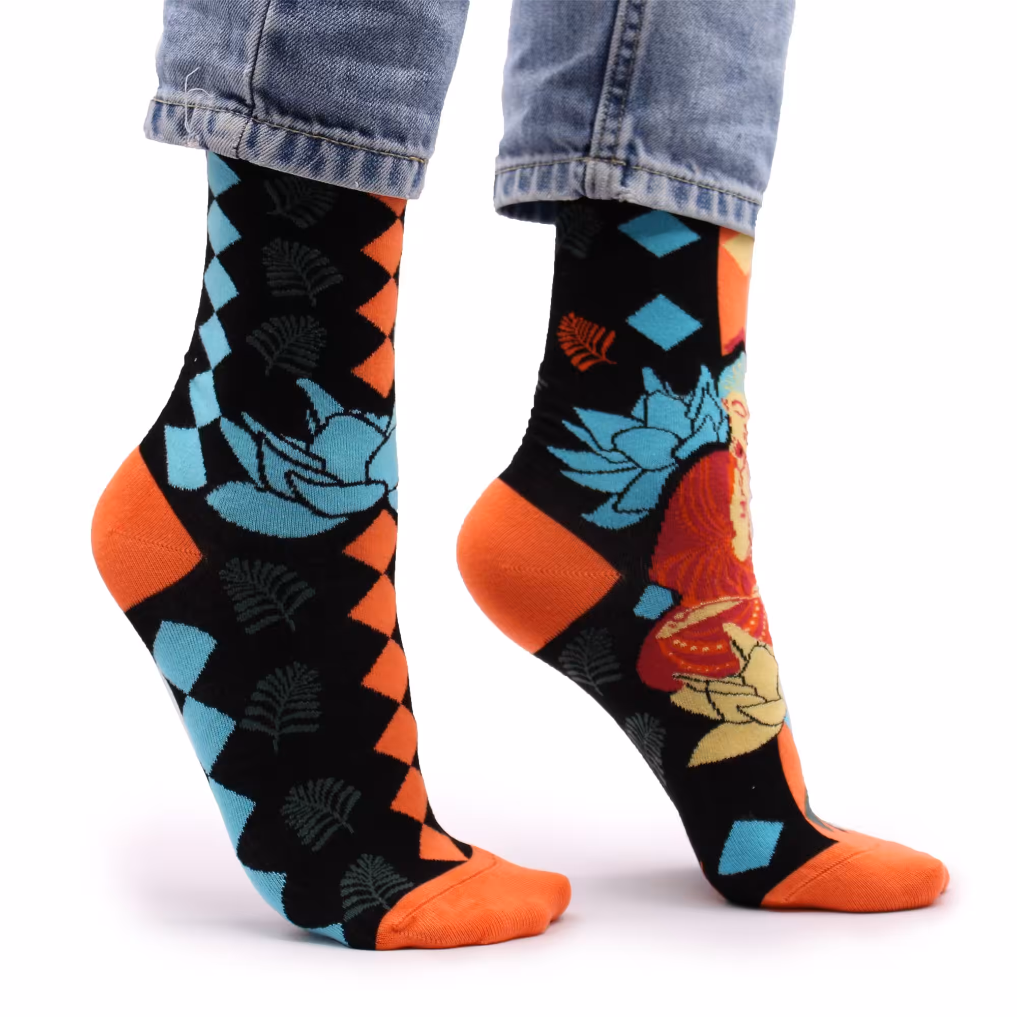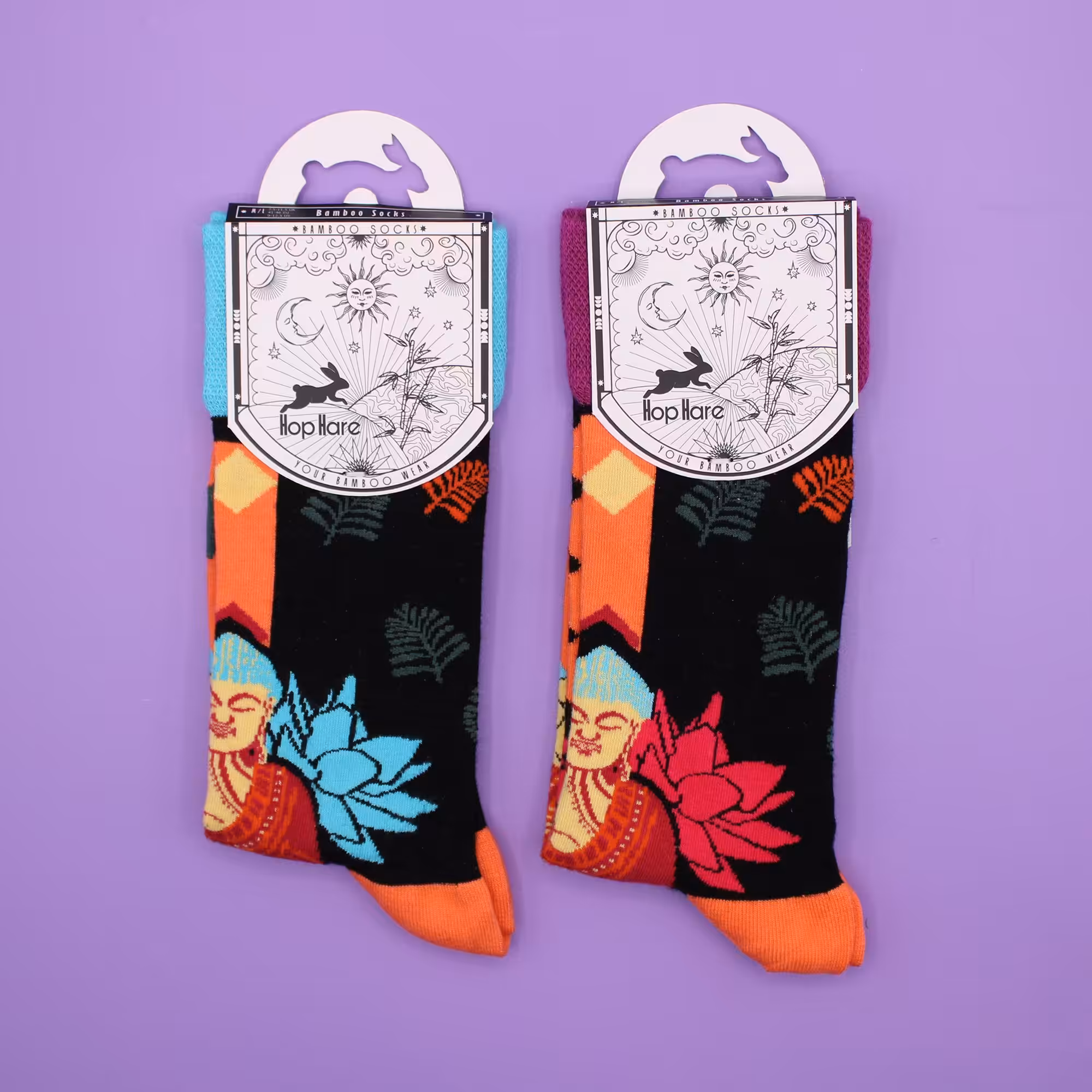 Hop Hare Bamboo Socks S/M – Blue Buddha & Lotus