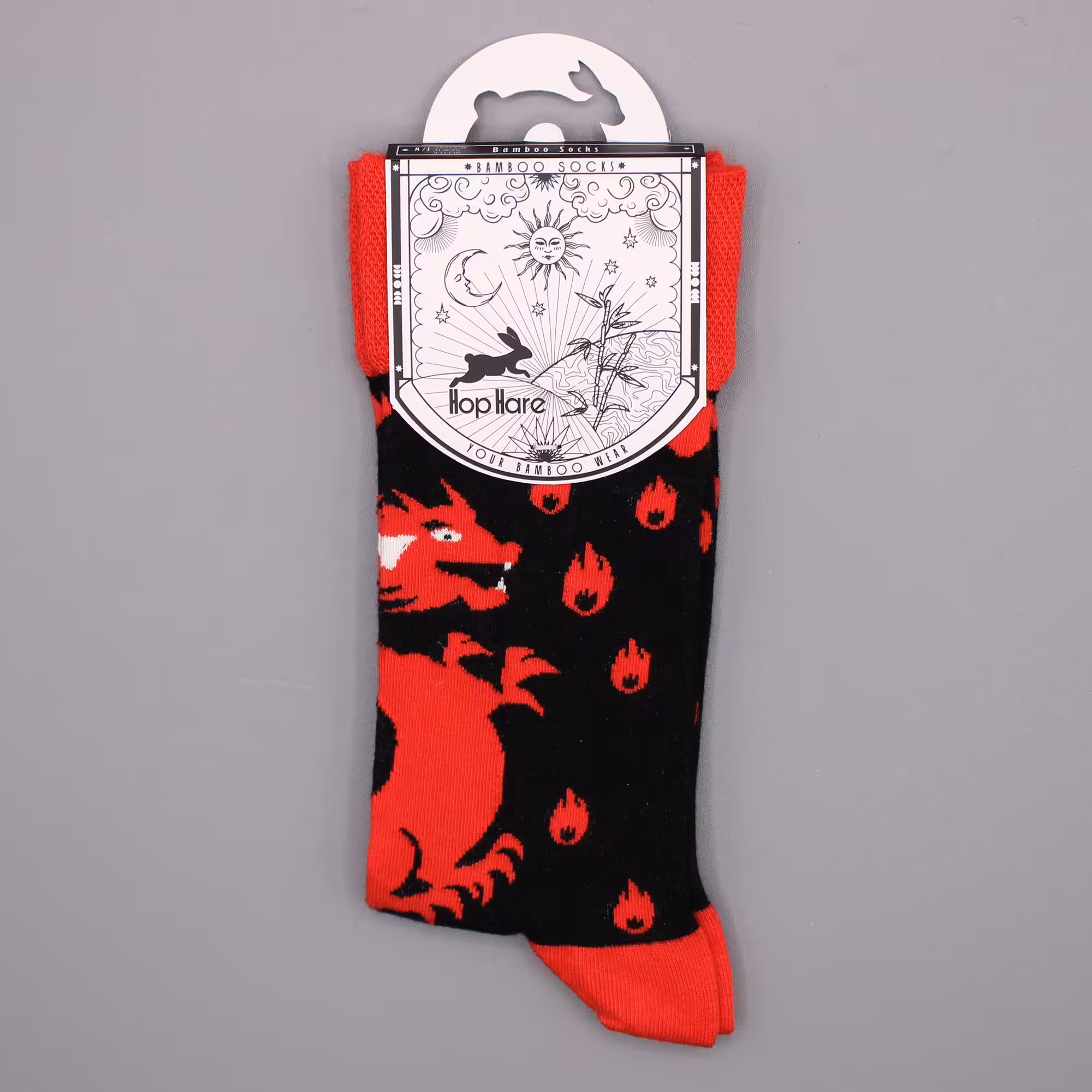 Hop Hare Bamboo Socks S/M – Red Dragons
