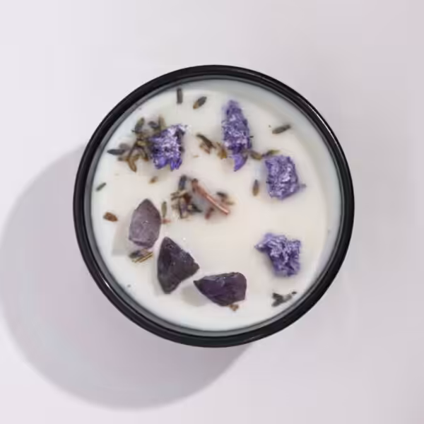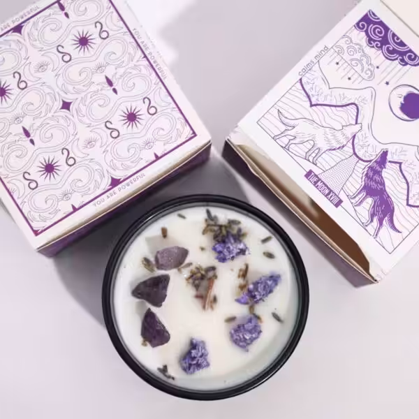 Step into the mystical world with Hop Hare Crystal Magic Flower Candle – The Moon, crafted with Amethyst gemstone and lavender flowers.