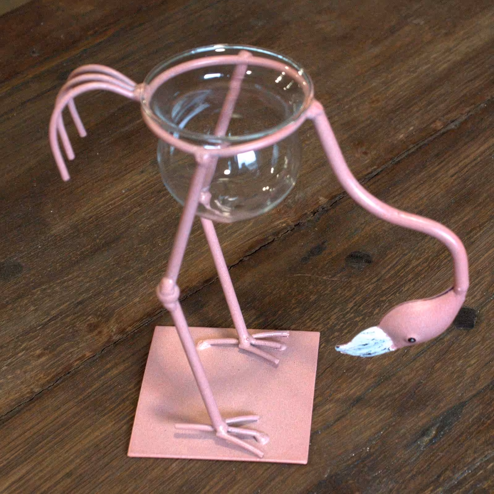 Hydroponic Home Décor – Pink Metal Flamingo Des 3