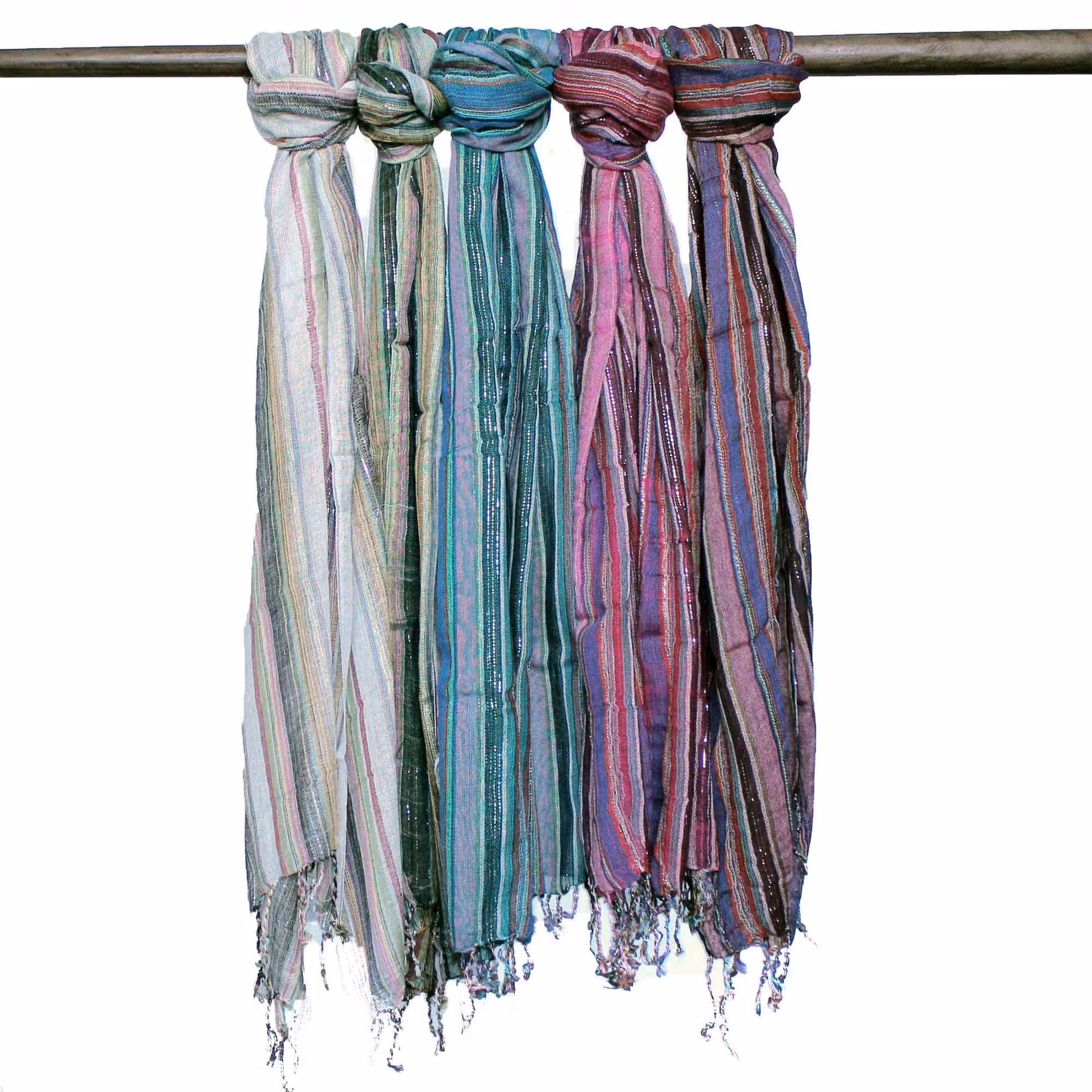 Step into a world of exquisite fashion with these Indian Boho Scarves, which feature random colours, woven with delicate gold threads for a touch of luxury.