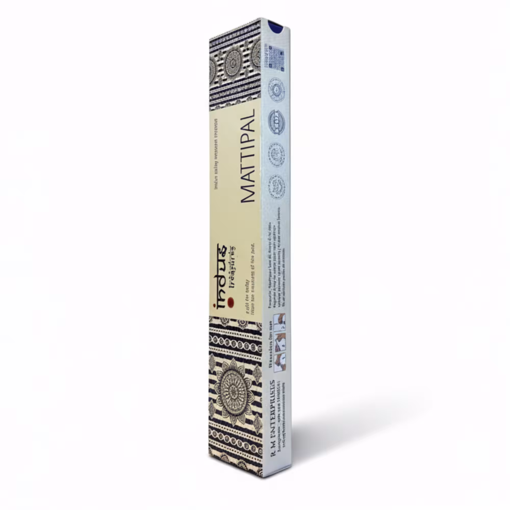 Experience the warm, resinous fragrance of Mattipal, a rare Indian resin treasured for centuries in temples and meditation spaces. Each hand-rolled stick offers a soothing, grounding aroma that transforms any room into a place of peace.