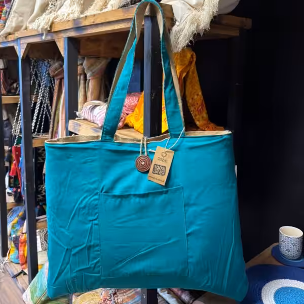 Discover the Jute & Cotton Reversible Big Bag in Teal, perfect for eco-friendly shopping or everyday use. Its stylish design and spacious interior make it a versatile choice.