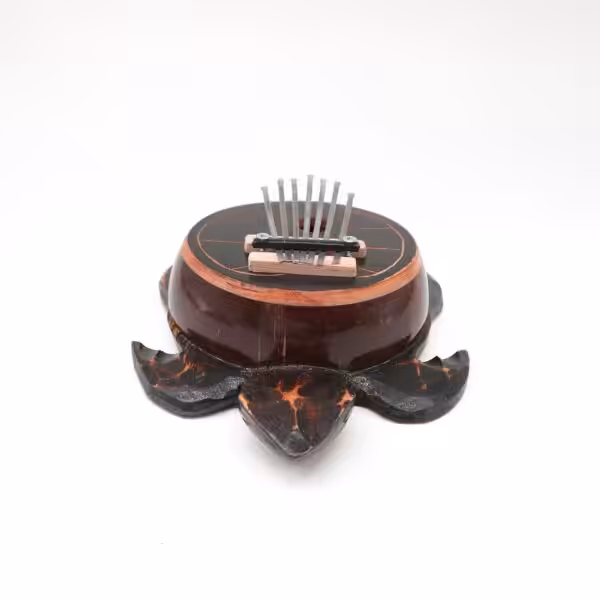 The Kalimba Antique Turtle Coconut is a stunning example of a decorative musical instrument that fuses traditional craftsmanship with melodic charm. This unique kalimba not only serves as a delightful musical tool but also stands out as an exquisite piece of art, ideal for enhancing any space in your home or office. Its intricate design, inspired by nature, adds an element of sophistication and cultural flair to your décor.