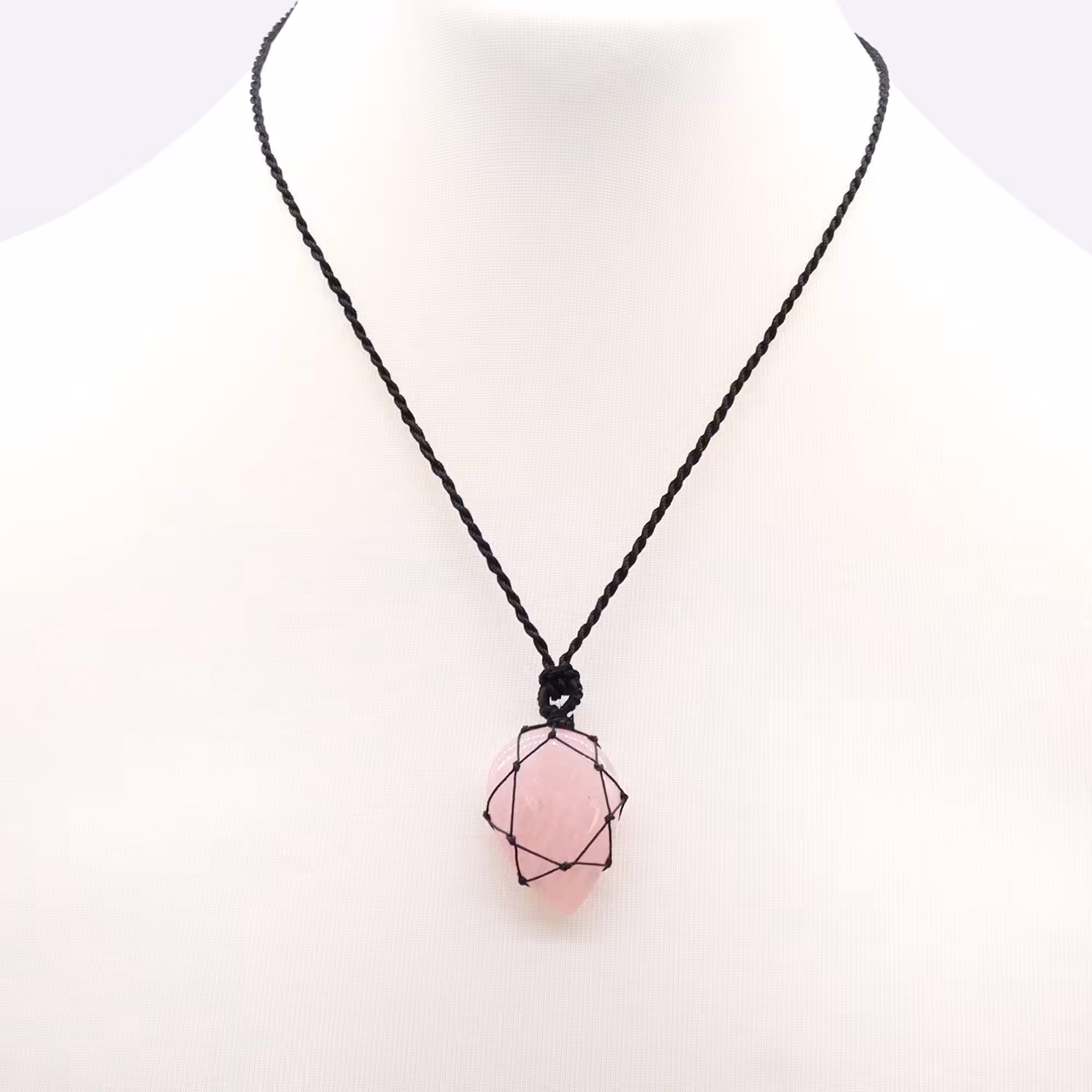 Each Rose Quartz Teardrop Pendant is meticulously laced to showcase the gemstone's natural allureand the adjustable string allows for a customised fit, making it suitable for any occasion.