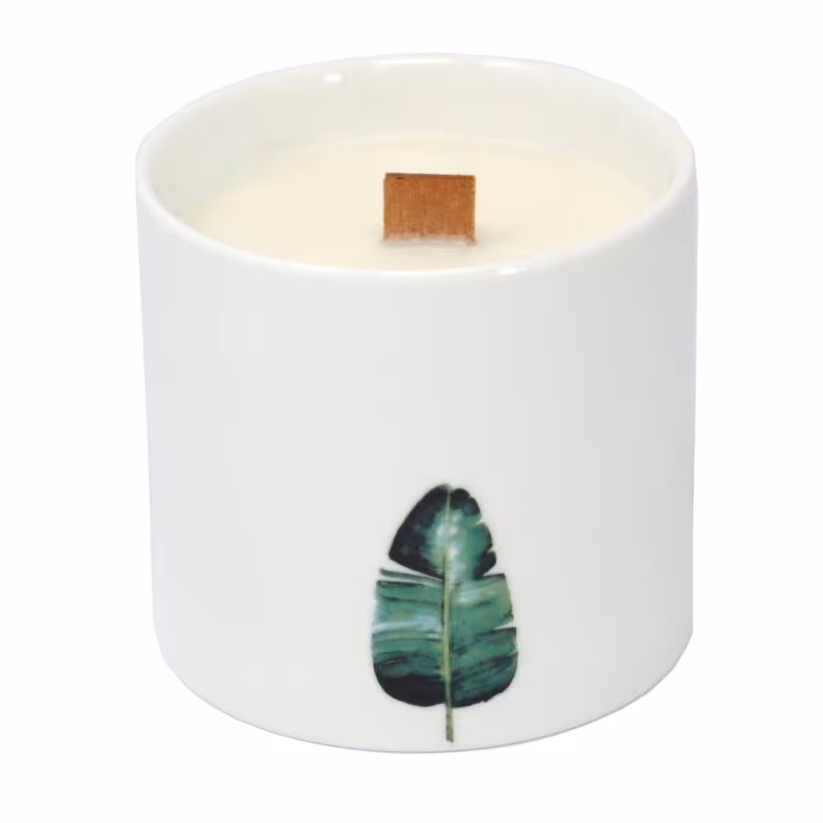 Botanical Candles are presented in round ceramic jars that can be reused, bar-coded and packaged nicely in a presentation box. Each candle contains a wooden wick instead of a traditional wick
