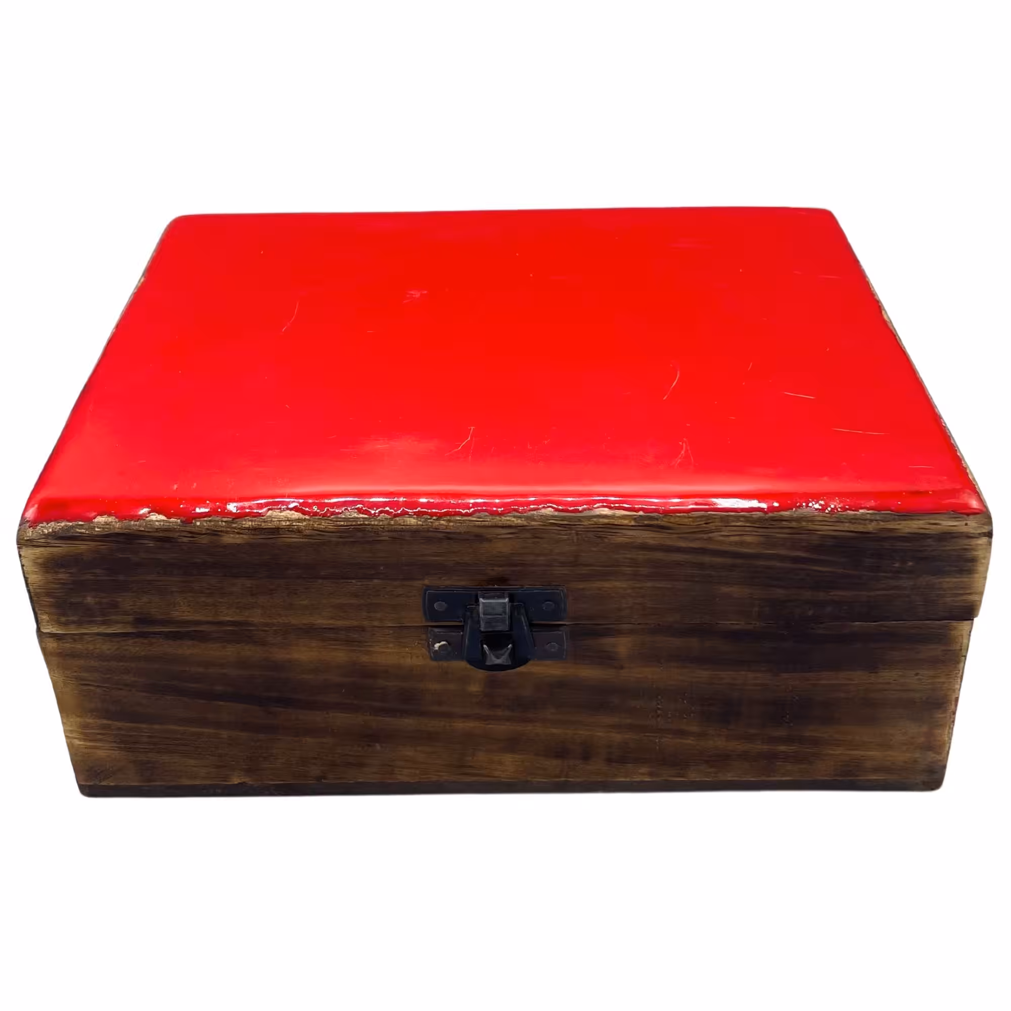 Large Ceramic Glazed Wood Box – 20x15x7.5cm – Red