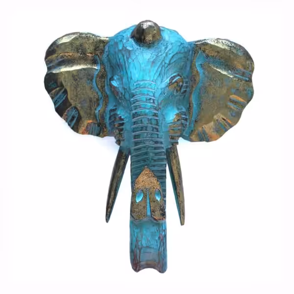 Large Elephant Head in a captivating Gold & Turquoise finish, meticulously crafted from Albasia wood in the artisan-rich landscapes of Indonesia. This exquisite piece seamlessly blends the majesty of the elephant with the elegance of fine craftsmanship.