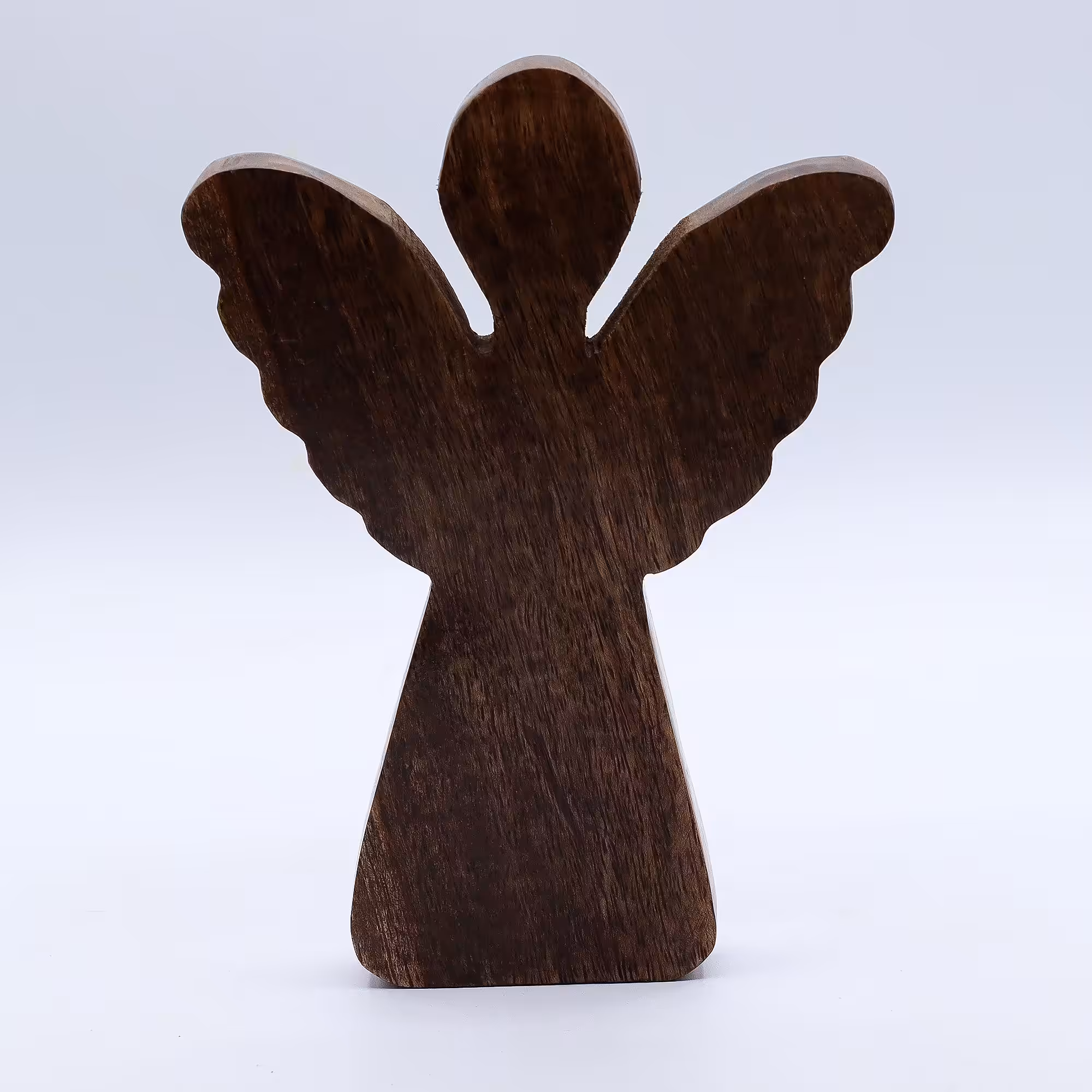 Graceful and eye-catching, this 19cm hand-carved mango wood angel is finished with radiant gold wings that catch the light beautifully. A heartfelt gift or a meaningful piece of home decor, it brings a touch of serenity and elegance to any setting.