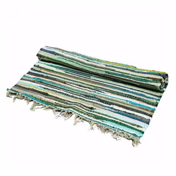 Luxury Large Rag Rug, a natural elegance for your inventory. These meticulously crafted rugs, measuring 150x90cm, embody premium quality and showcase a soothing palette of natural greens.
