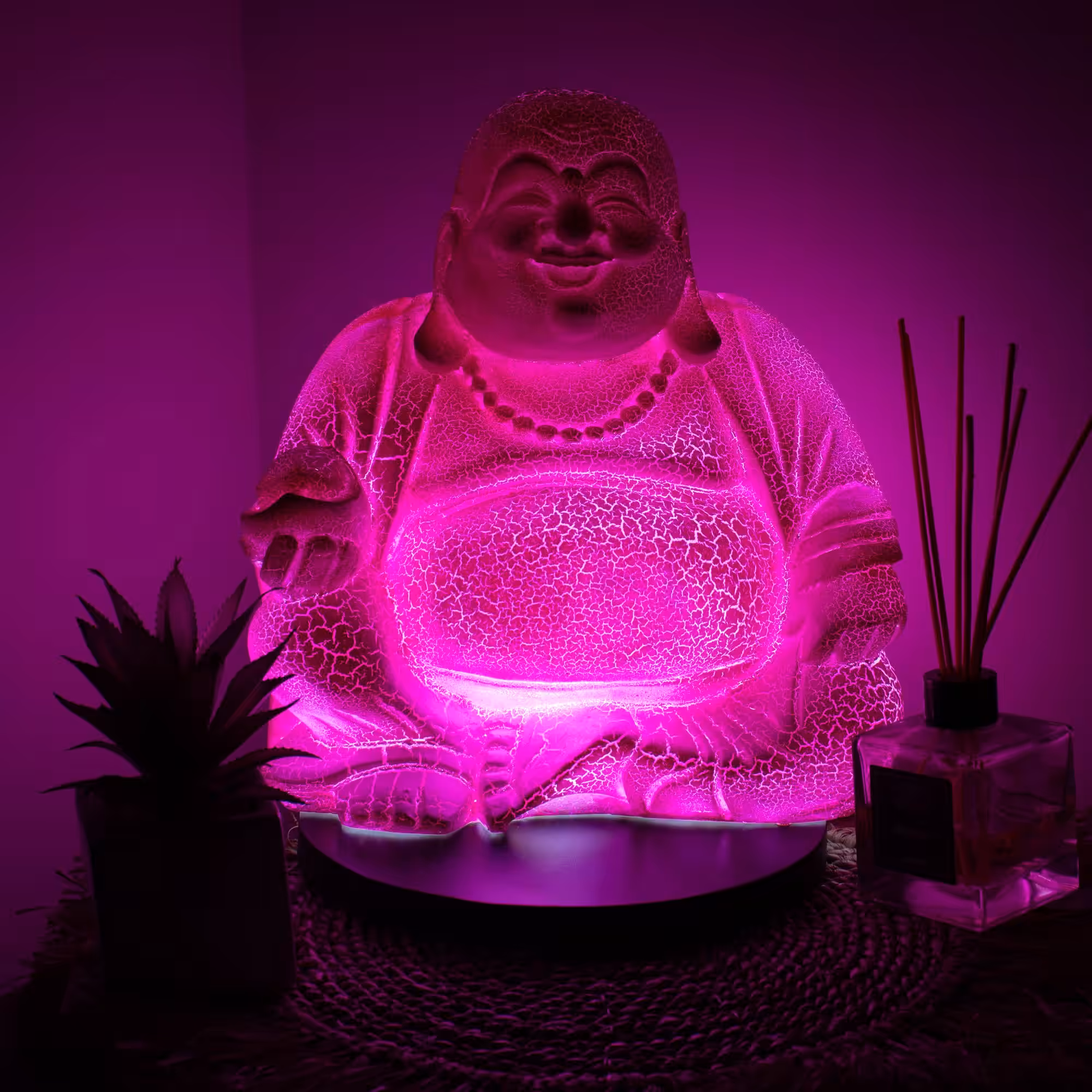 The Laughing Buddha Lamp in Dragonfruit is all about positivity, energy, and personality. With its striking pink crackle finish, it instantly becomes a standout piece, adding a bold pop of colour to any room.