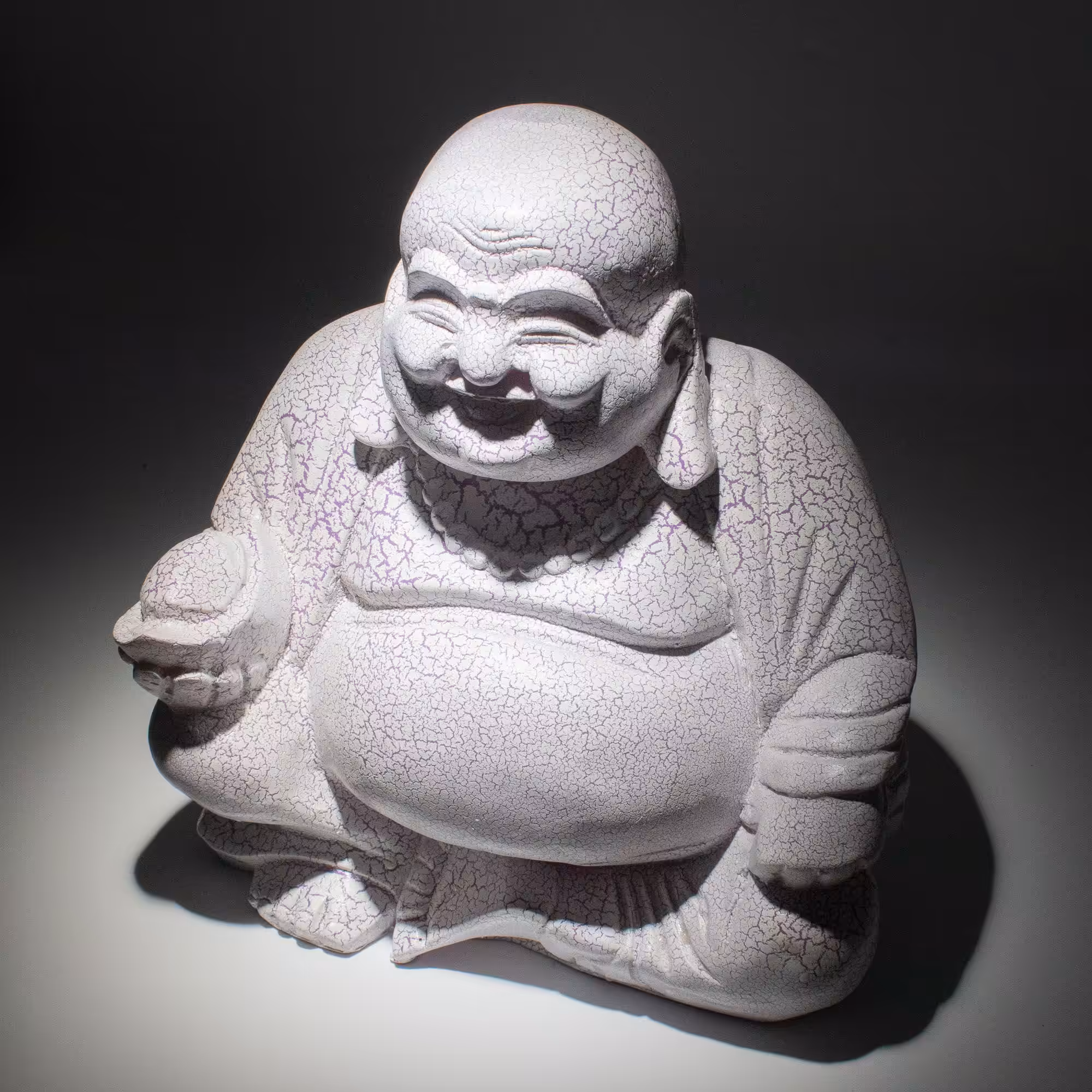 The Laughing Buddha Lamp in Lavender Crackle blends gentle colour with a beautifully textured finish, creating a piece that feels both soothing and distinctive. The subtle lavender tones paired with the crackle effect give it a delicate, almost dreamlike appearance.