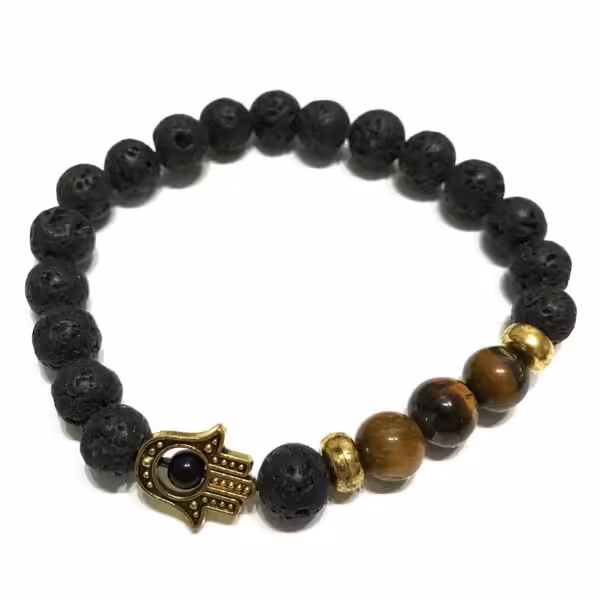 Lava Stone Bracelet – Hamsa Tiger-eye