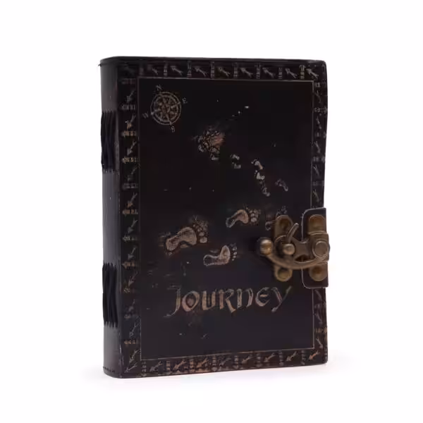 This beautifully embossed journal features a unique design with footprints and a compass, symbolising personal journeys and adventures.