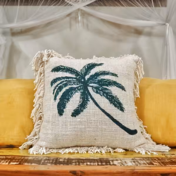 The Linen Cushion Cover 45x45cm Palm Tree with Fringe is an exquisite addition to our range of Linen Cushion Covers, designed to bring a refreshing tropical vibe to your living space. Its eye-catching palm tree motif combined with a delicate fringe adds a playful yet sophisticated touch, making it perfect for both modern and traditional interiors alike.