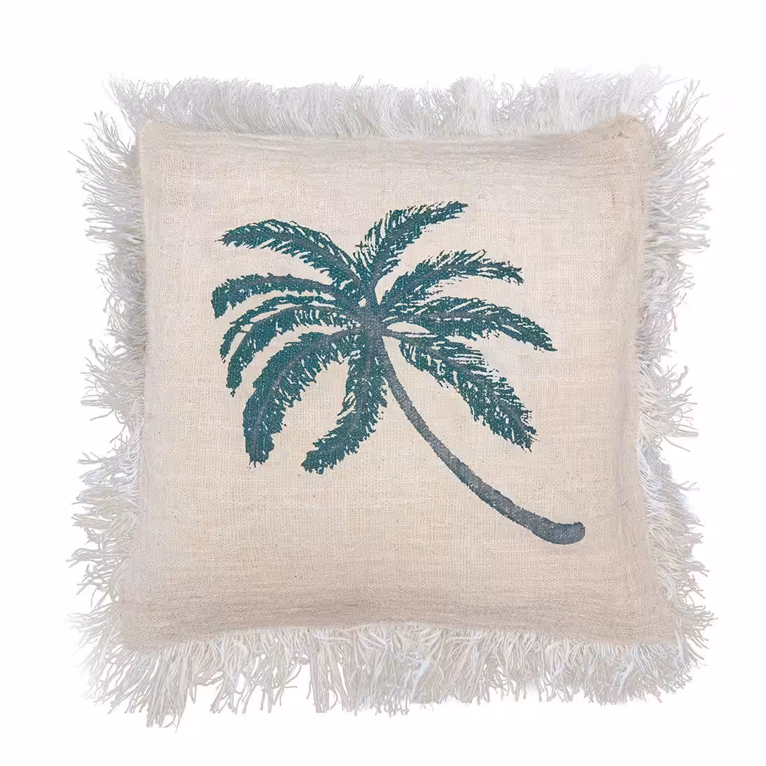 Linen Cushion Cover 45x45cm Palm Tree with Fringe