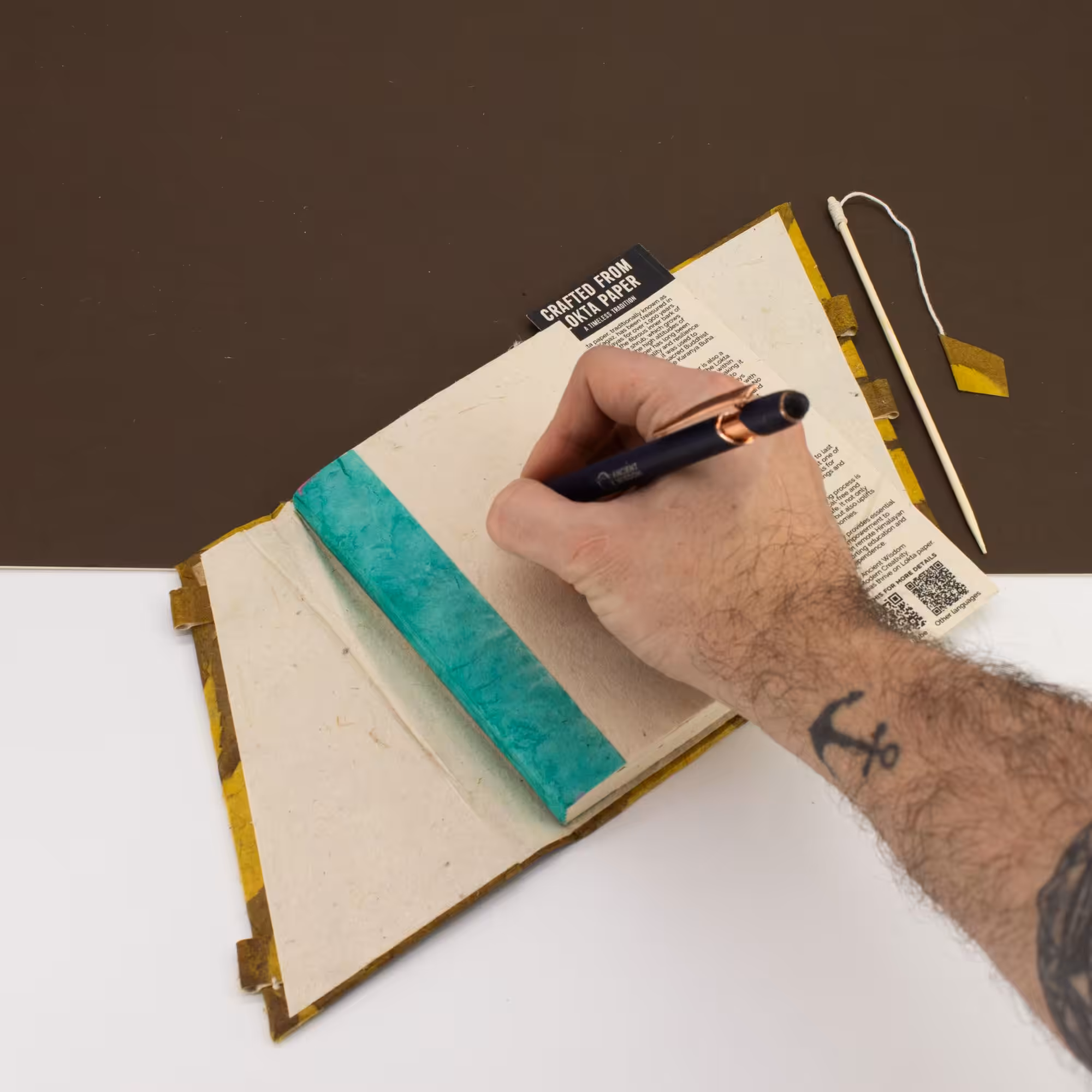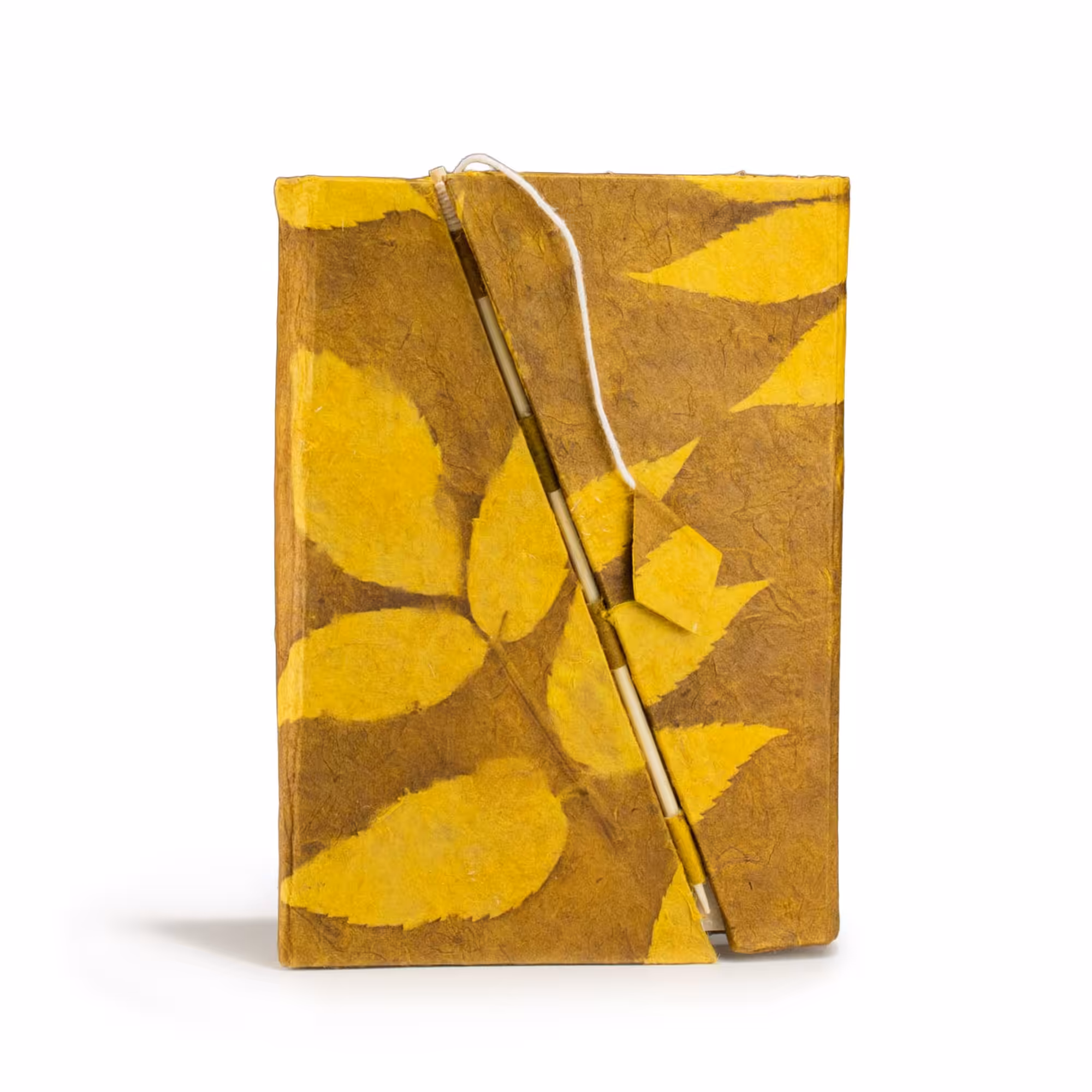 Warm mustard and earthy brown tones give this notebook a natural, grounded look that feels both creative and timeless. Compact and easy to carry, it’s made for everyday writing, sketches or ideas, finished with a simple bamboo lock for added character.