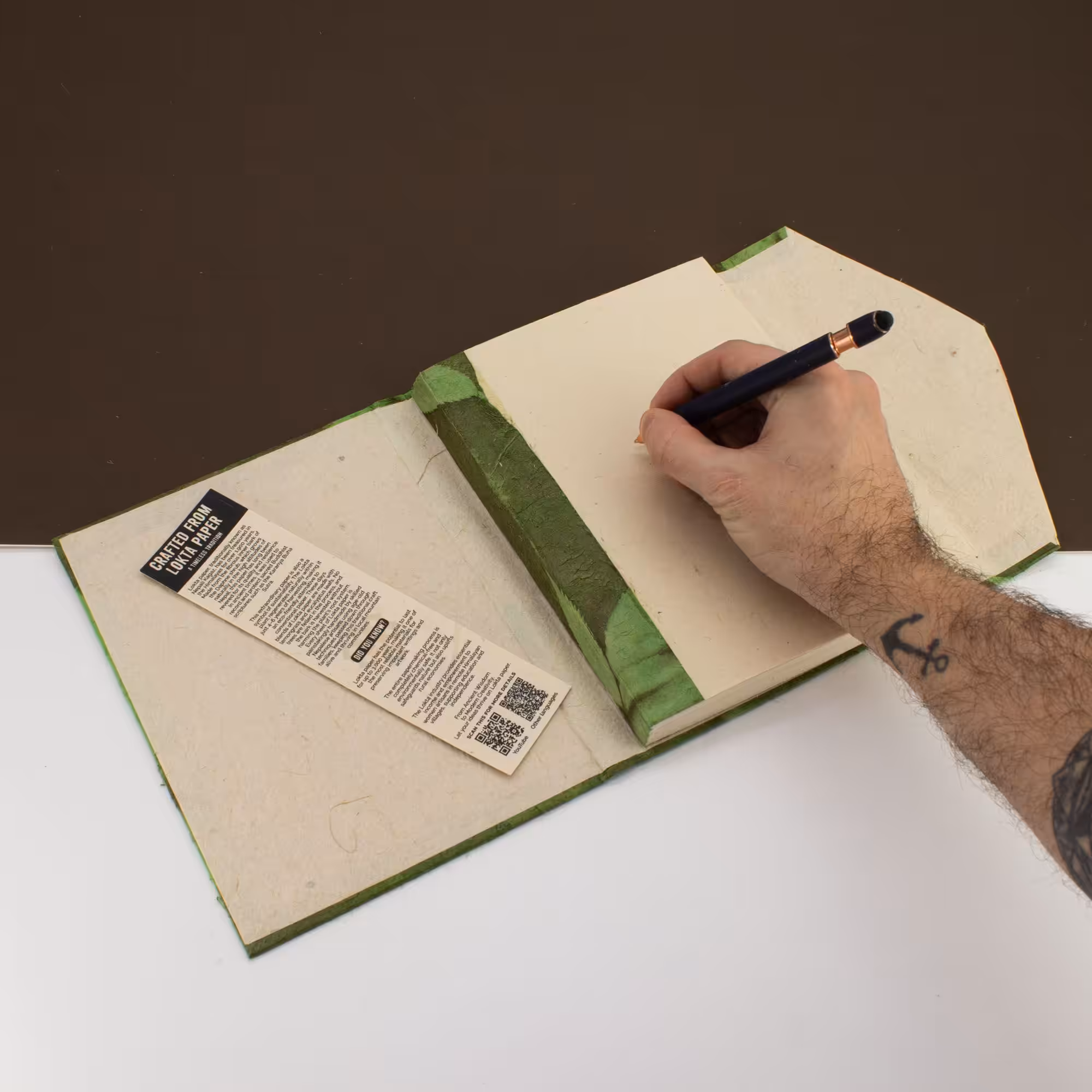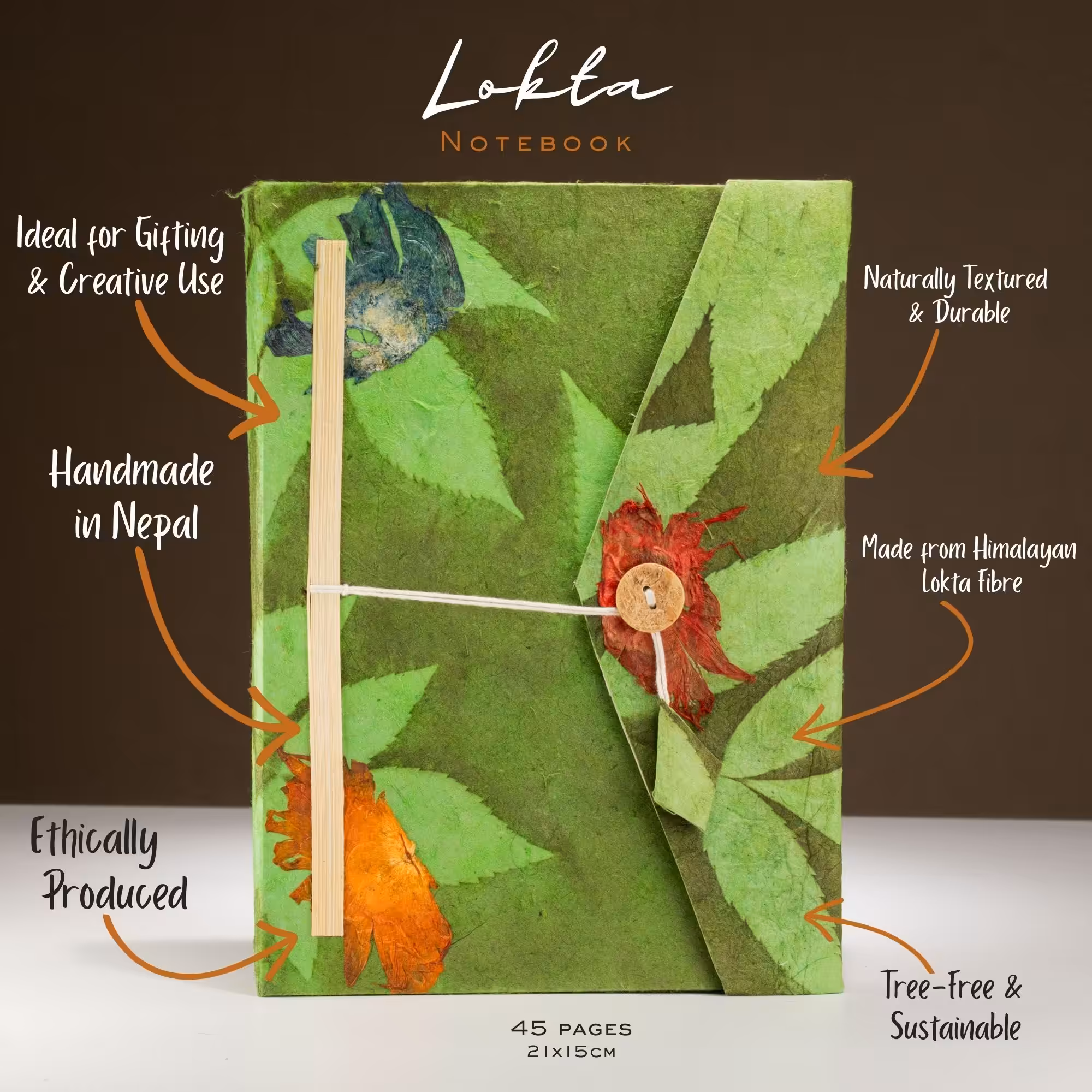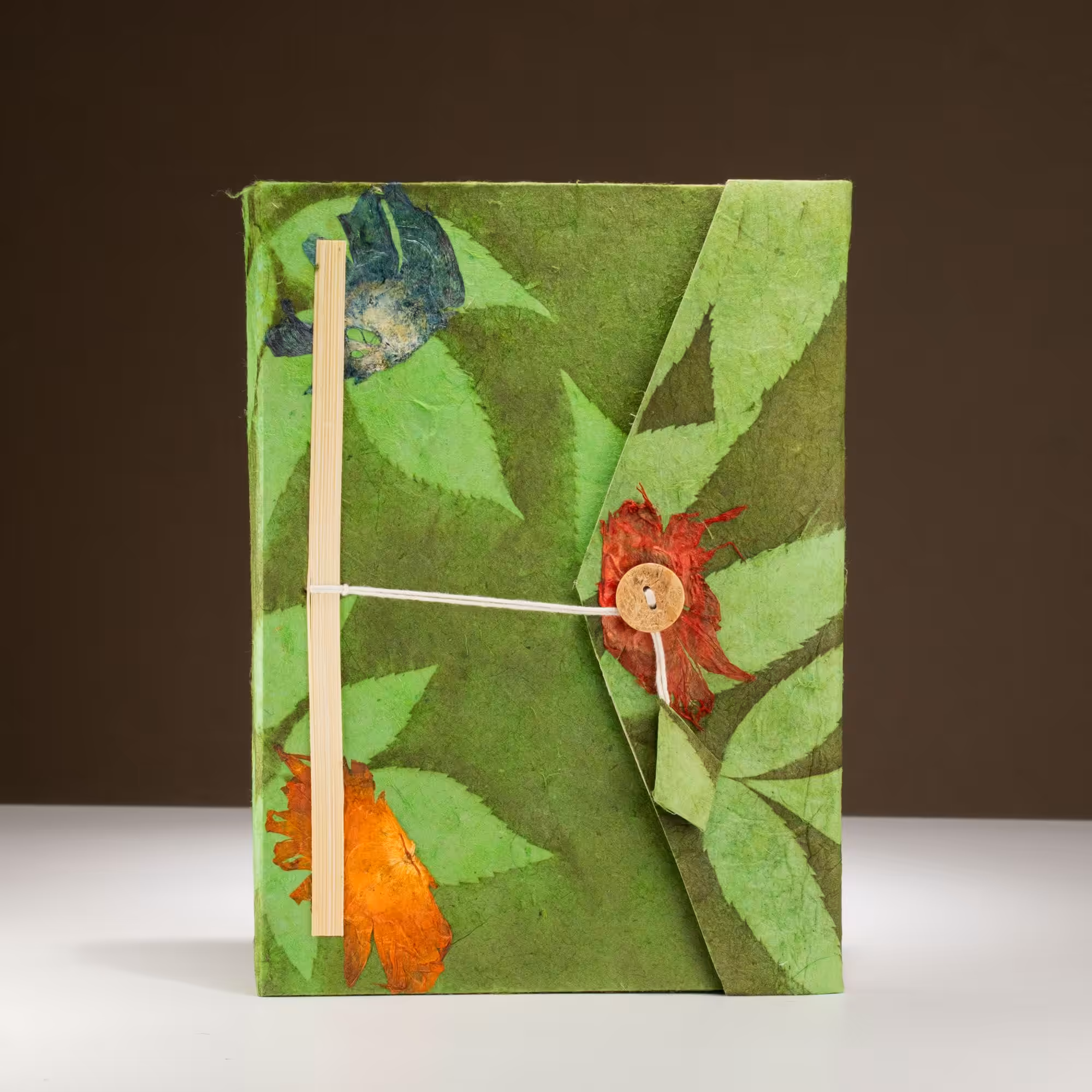 A beautifully earthy notebook that brings nature into everyday writing. The moss green cover with bold floral details gives it a calm, handcrafted feel, while the large format offers plenty of space for notes, journalling or creative ideas.