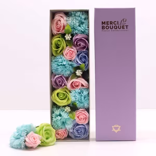 Whether you’re celebrating the birth of a baby boy or simply want to add a thoughtful touch to your gift-giving, the Long Box – Baby Blessings – Blues is a versatile choice. Its unique design makes it suitable for various occasions, while the soothing colours create a calming atmosphere. Additionally, these soap flowers are easy to care for and can last for months, making them a fantastic investment for anyone wanting to brighten up their home or nursery with a touch of elegance.