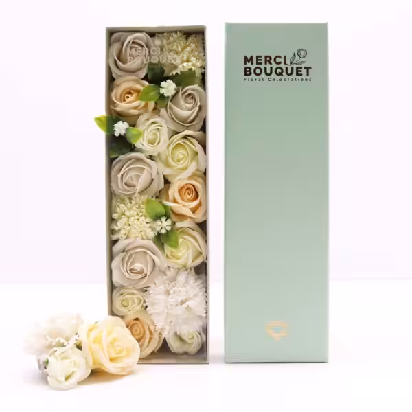 The Long Box – Wedding Blessings in White & Ivory is a beautifully crafted gift box that captures the essence of love and celebration. Ideal for weddings, anniversaries or as a thoughtful gesture, this soap flower gift box adds a touch of elegance to any occasion. The delicate white and ivory hues create a serene and romantic atmosphere, making it a perfect choice for gifting to newlyweds or as a decorative piece in your home.