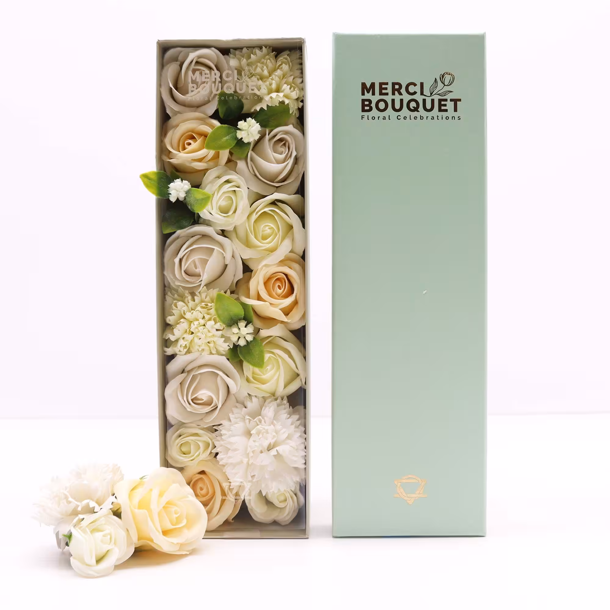 Soap Flowers Long Gift Box – Wedding Blessings – White & Ivory