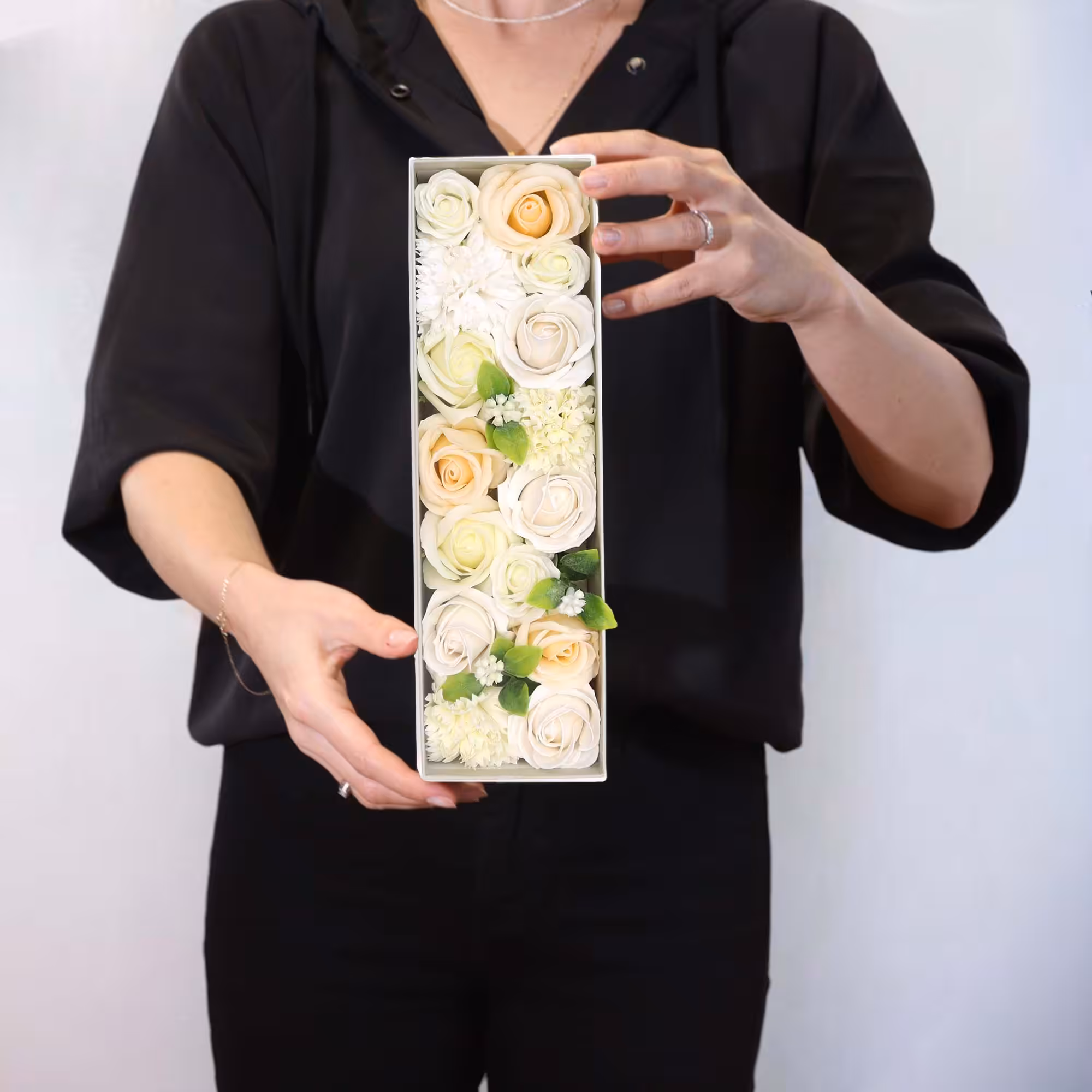 Soap Flowers Long Gift Box – “Wedding Blessings” – White & Ivory: Beauty, fragrance and eternal love, all in one.