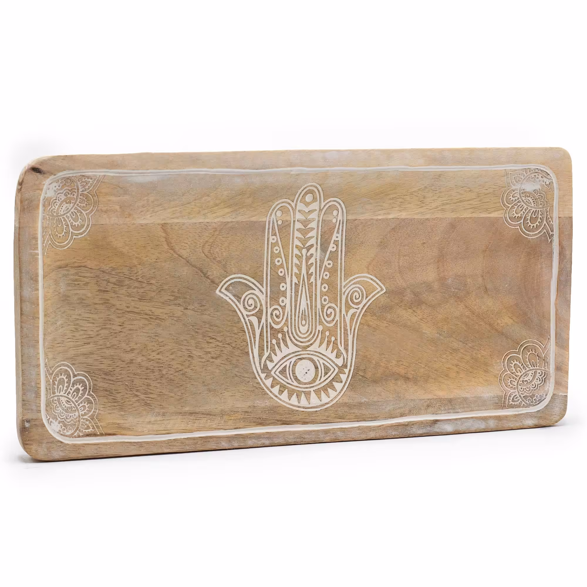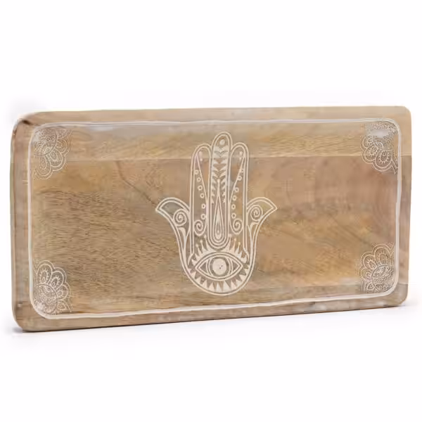 Long Tray 30x15x2.5cm – Hamsa Design Whitewash
