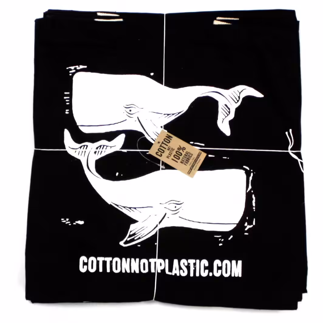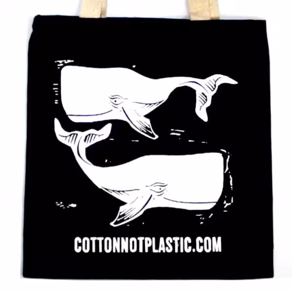 An ideal "Bag for Life" rather than a plastic bag. The printed designs include sea-life block print designs and the CottonNotPlastic.com logo, which is an info website about how cotton is good for the earth and eco-friendly.