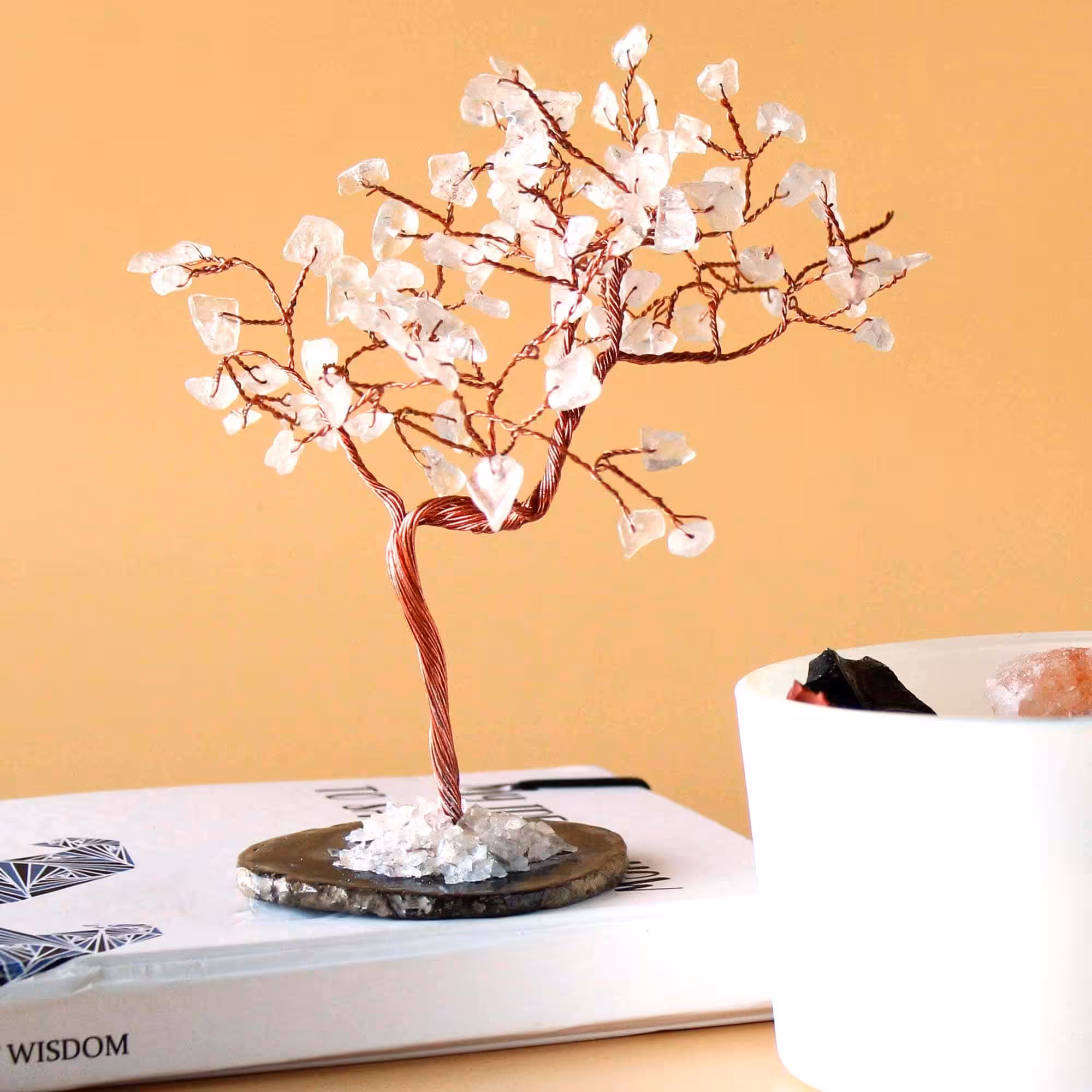 Rock Quartz Radiance: Adorned with an impressive 100 lustrous rock quartz gemstones, each tree radiates the pure, illuminating energy for which rock quartz is celebrated.
