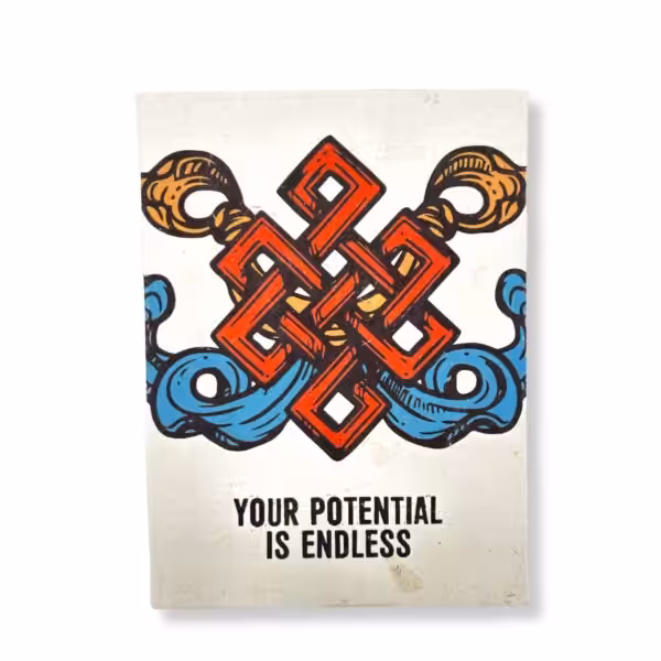 Uplifting and practical, this inspirational Lokta notebook makes a positive statement right from the cover. Featuring a bold red and orange motif with the phrase “Your Potential is Endless,” it encourages self-belief while offering high-quality, handmade appeal.