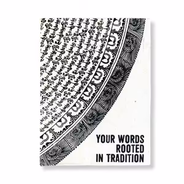 With its striking black-and-white tribal-style motif and the thoughtful phrase “Your Words Rooted in Tradition,” this notebook makes a refined and memorable addition to any stationery collection. The cover design draws on heritage influences, while the message invites deeper thought and meaningful journaling.