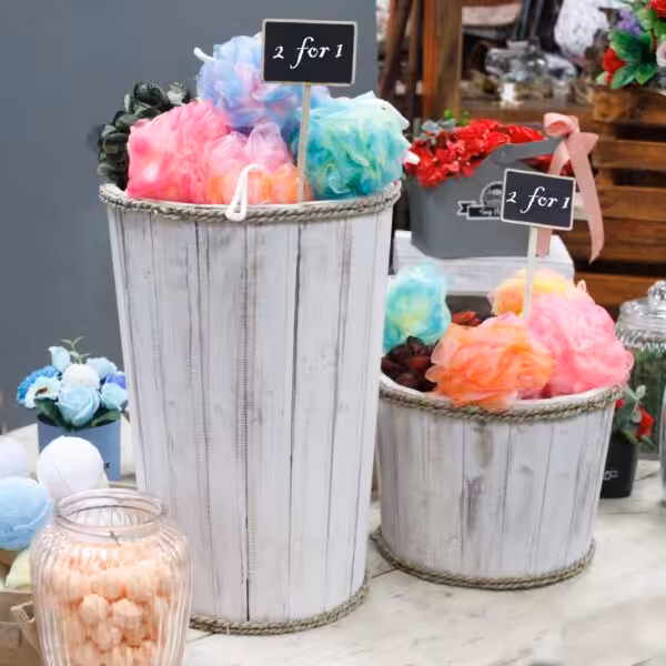The Lrg Nautical Display Tub in Whitewash is an elegant addition to any retail display stand, measuring 45x32cm. This versatile tub is designed to enhance the presentation of your products while adding a touch of nautical charm to your store. Its whitewashed finish complements various decor styles, making it a perfect fit for both coastal-themed and contemporary retail environments.