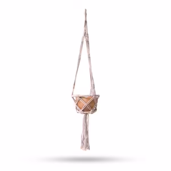Macrame Hooped Pot Holder Small – Beige – 16cm Hoop