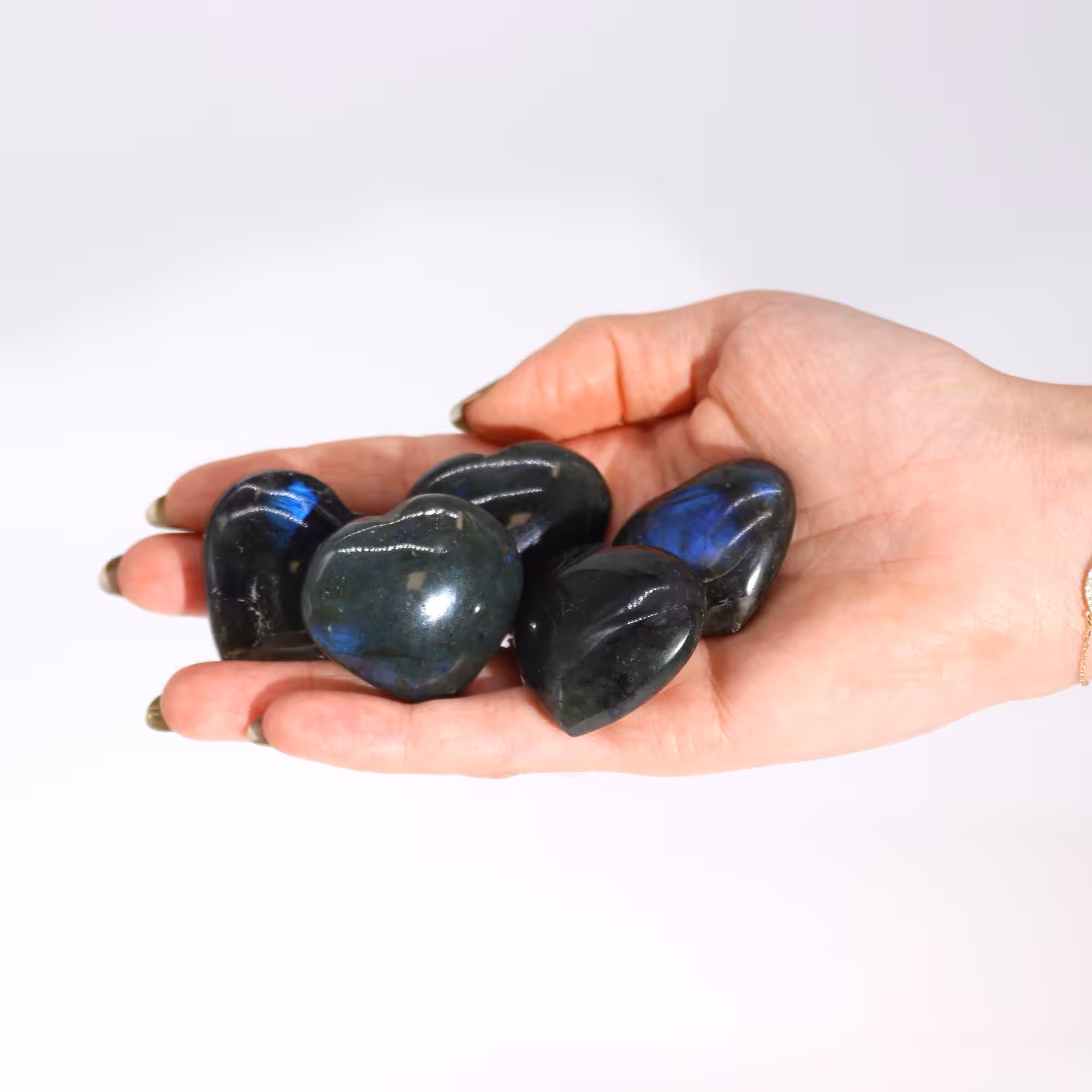 Admire the stone's stunning display of iridescent colours, shifting and changing with the light. This phenomenon, known as labradorescence, creates a truly magical and ethereal appearance. Carry this heart-shaped treasure with you as a reminder of love, intuitionand inner strength.